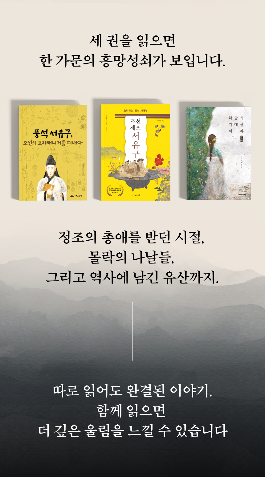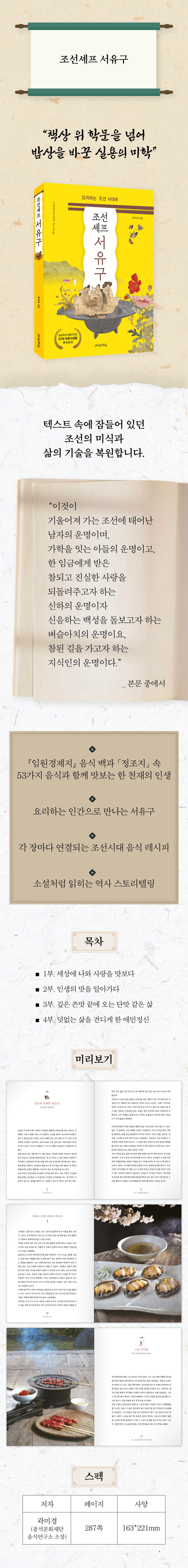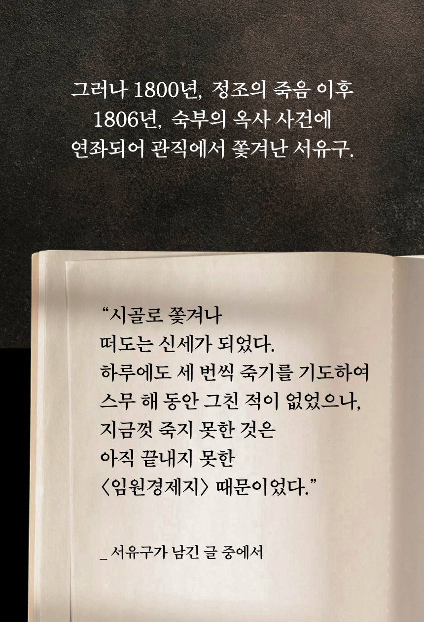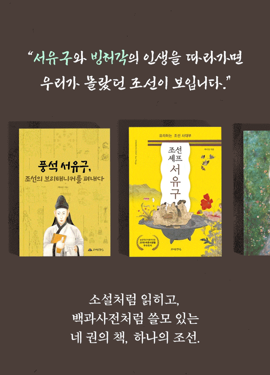 서유구에 대해 전혀 모른다면 『풍석 서유구, 조선의 브리태니커를 펴내다』를 먼저 추천합니다. 소설처럼 읽고 싶다면 『조선셰프 서유구』와 『허공에 기대선 여자 빙허각』부터 시작해도 좋습니다.