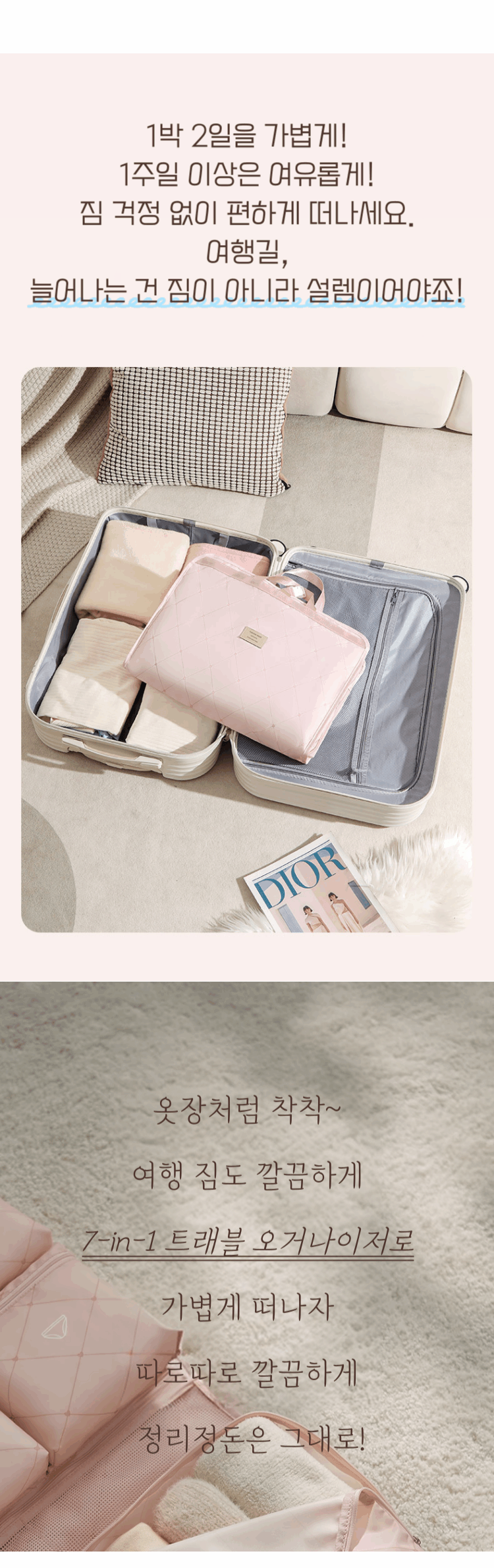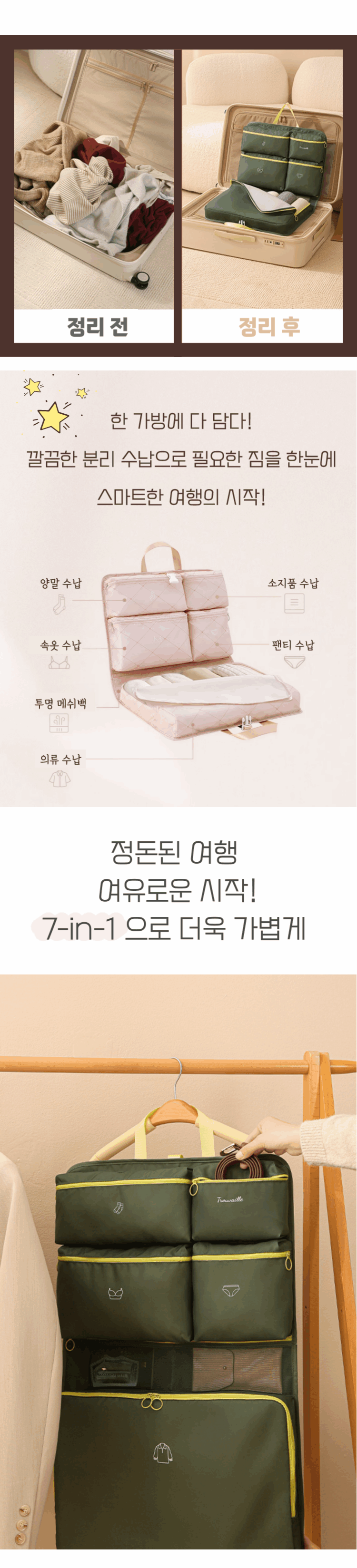 1. 🧳 7格分隔旅行收纳包 - 一次性整理内衣、袜子和洗漱用品 2. ✨ 减轻旅行收纳压力 - 模块化设计实现整洁便捷收纳 3. 🎁 优惠家庭、情侣、单人套装 - 提供高端设计多样组合选择