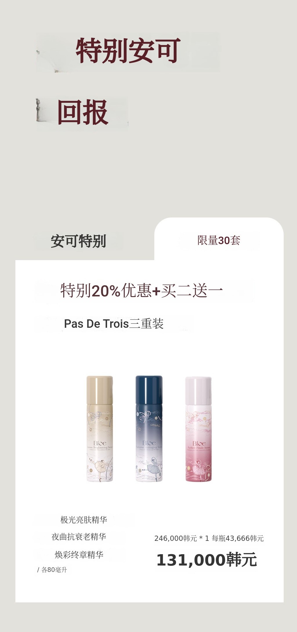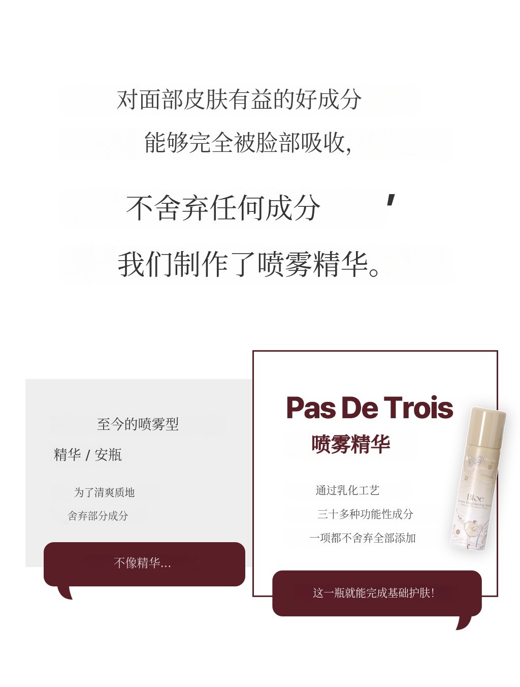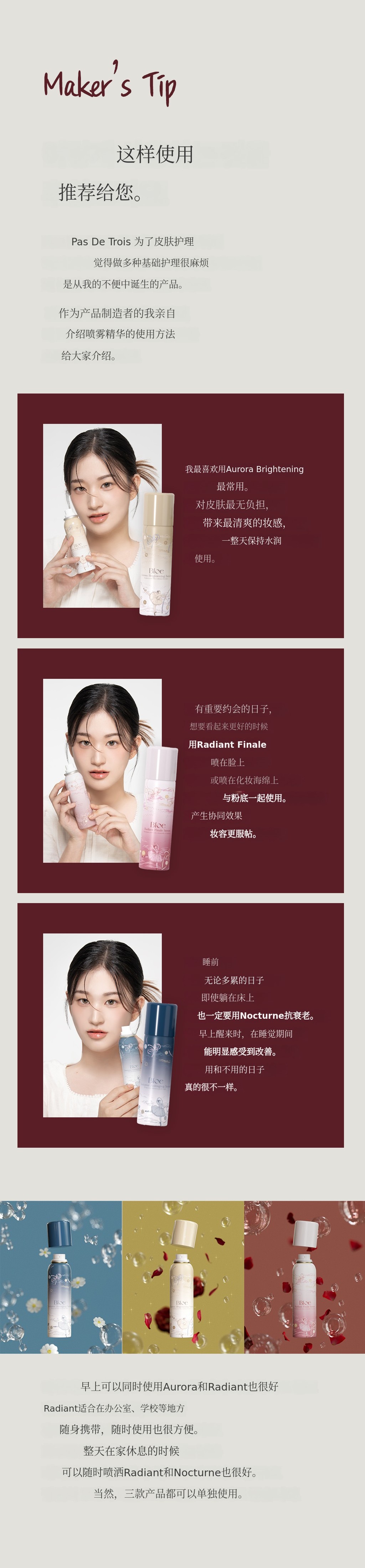 Bloe是一个融合感性与艺术的高端美妆品牌,致力于开发最大化肌肤本真之美的创新护肤产品。本次“Pas De Trois”系列意为“三位舞者和谐共舞”,以芭蕾的优雅与和谐为灵感,将美白、补水舒缓、胶原蛋白护理三大功效相结合,打造出协同增效的三步定制全能解决方案。
