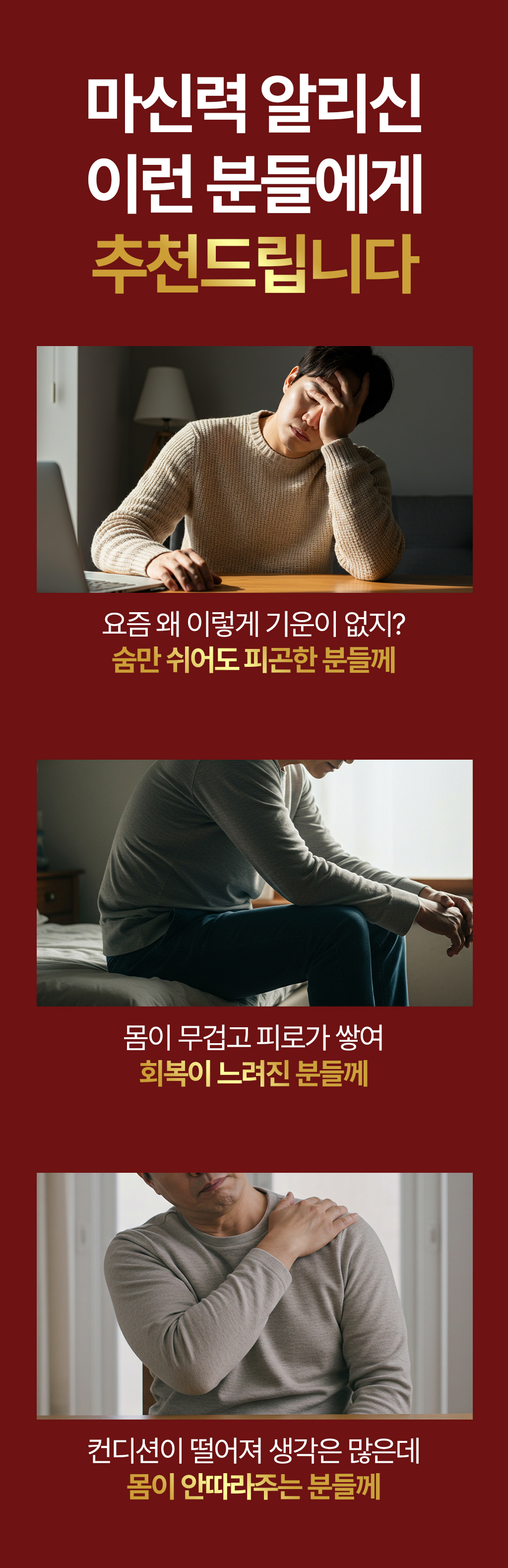 마신력은 바쁨과 책임 속에서 자신을 놓치고 살아온 남성들을 위해 만들어졌습니다.