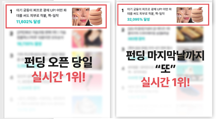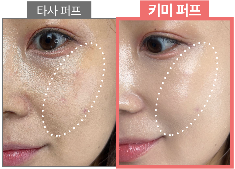 동일한 쿠션으로 퍼프만 다르게 했을 뿐인데