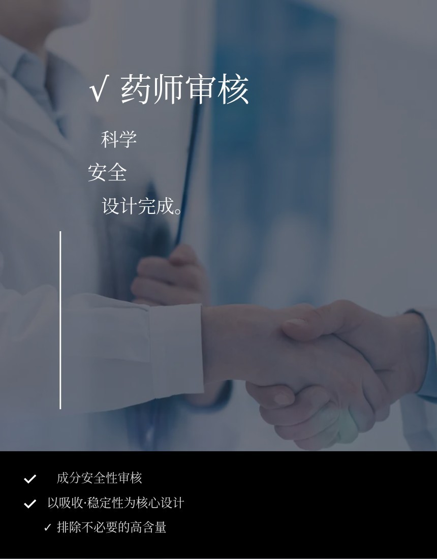 去除流通与营销中的泡沫,从药学专家的视角出发,将全部成本投入于 成分品质 与 使用体验。