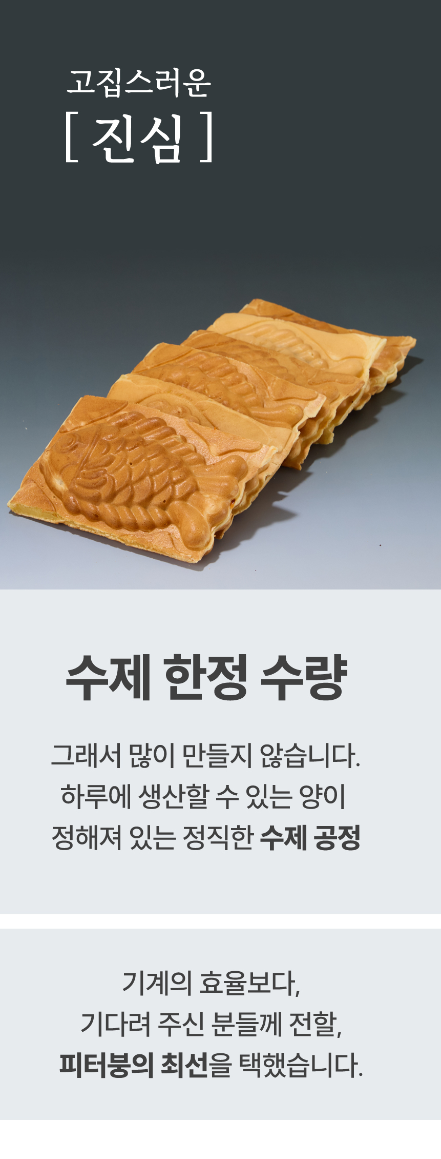 이번 프로젝트를 통해 피터붕어빵이 지향하는 ‘정직한 재료와 재가열까지 설계된 디저트’의 기준을 처음으로 공개합니다.
