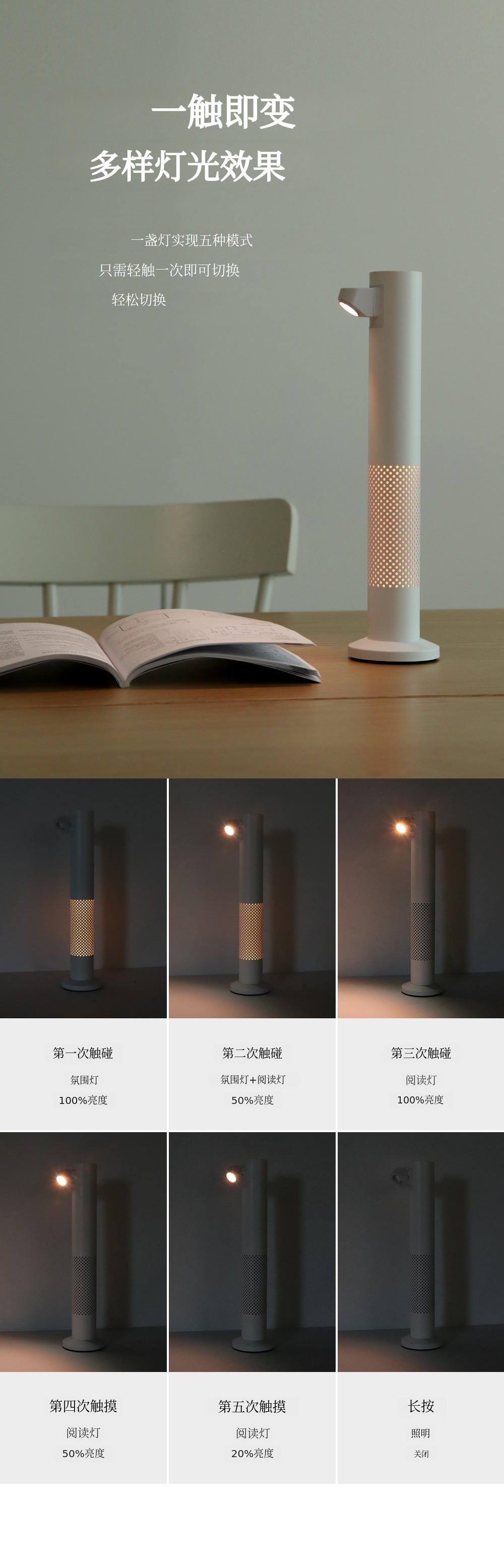 只需轻触一次,即可切换为睡眠灯、氛围灯、阅读灯。