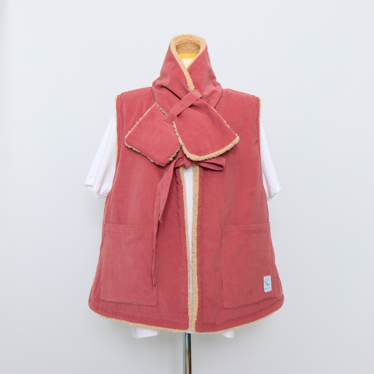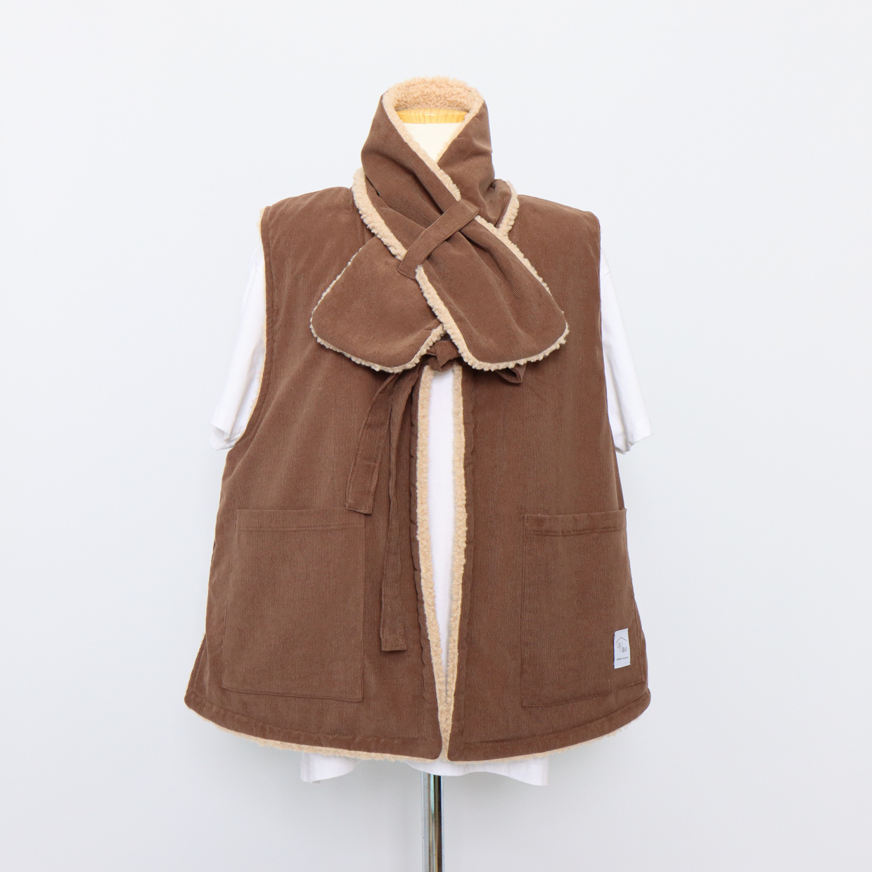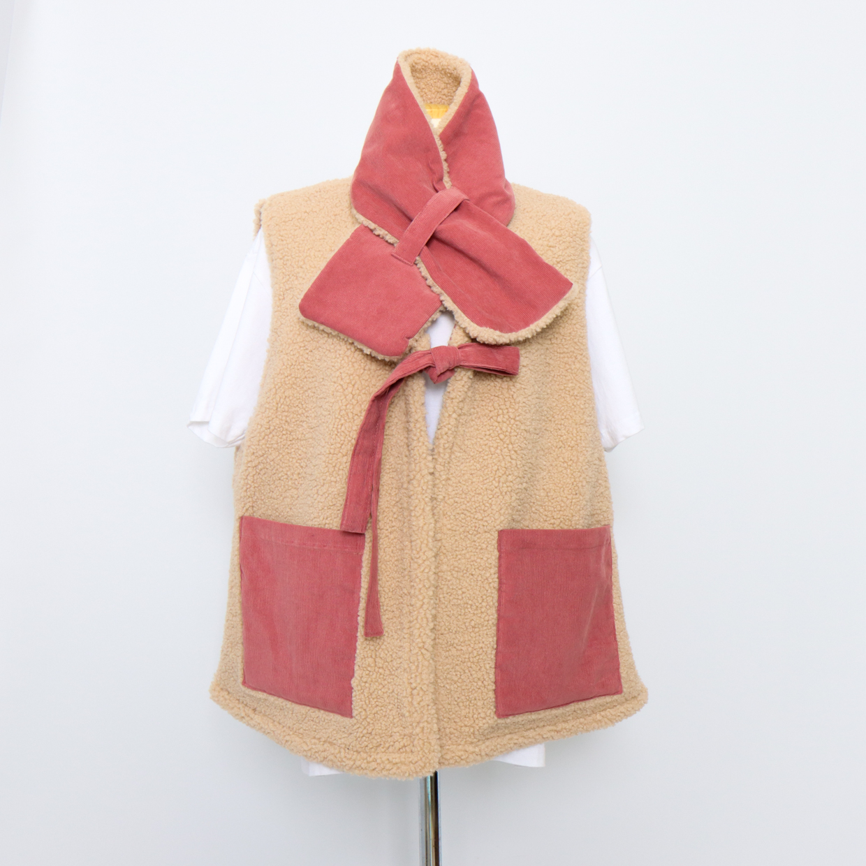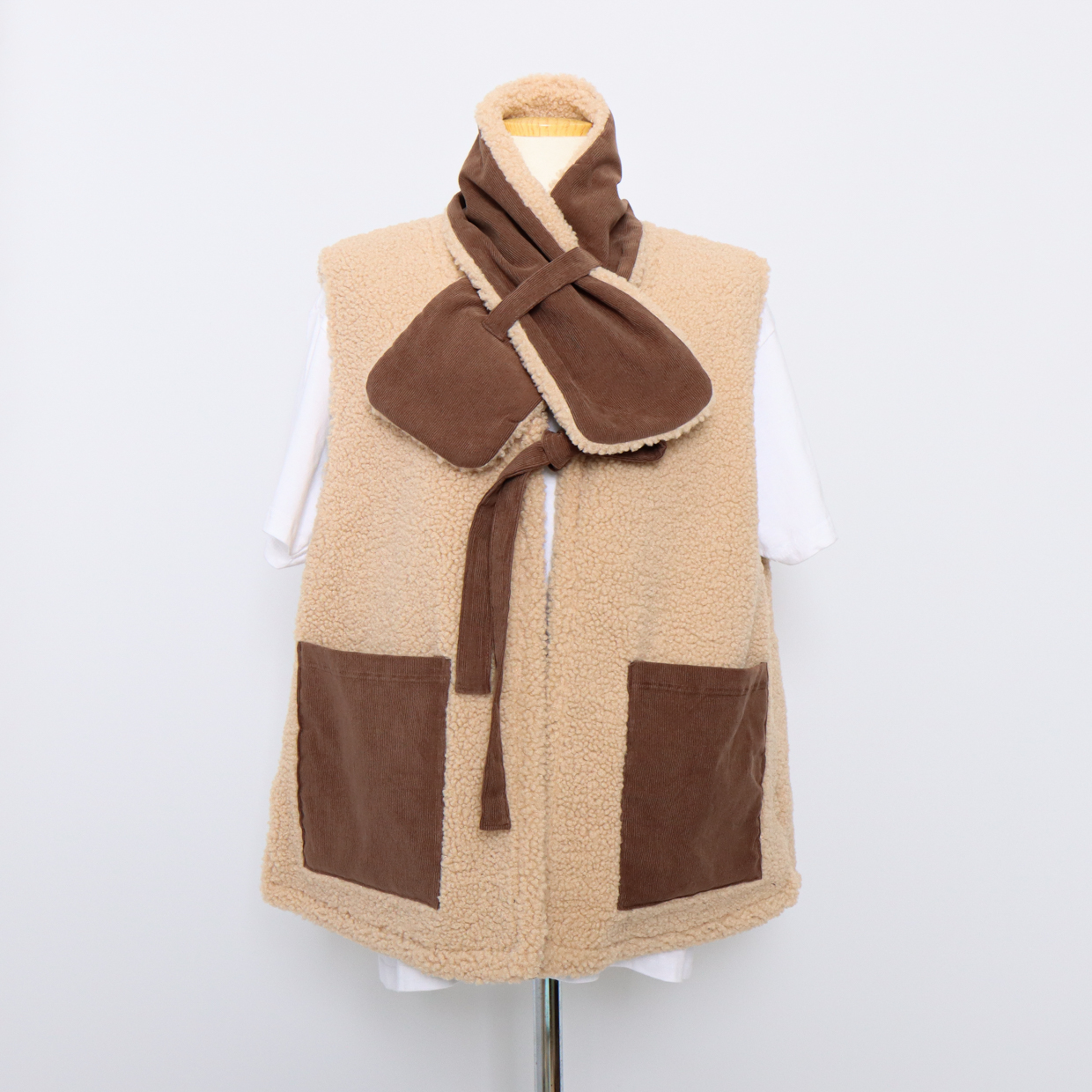 与温暖的毛绒围巾相配,更加提升温馨氛围的背心。无需额外费用,成套提供就是这样。