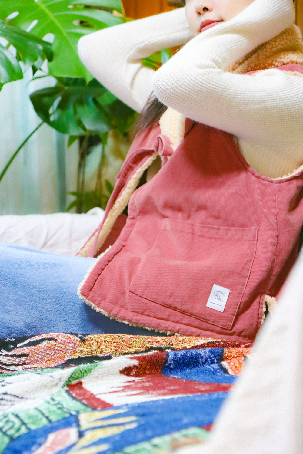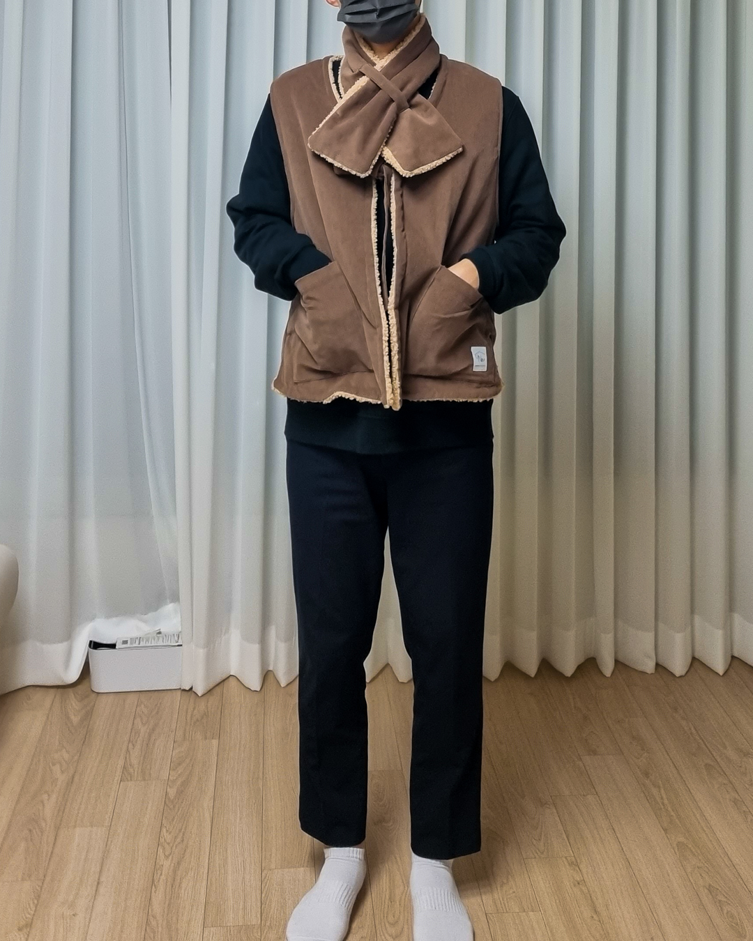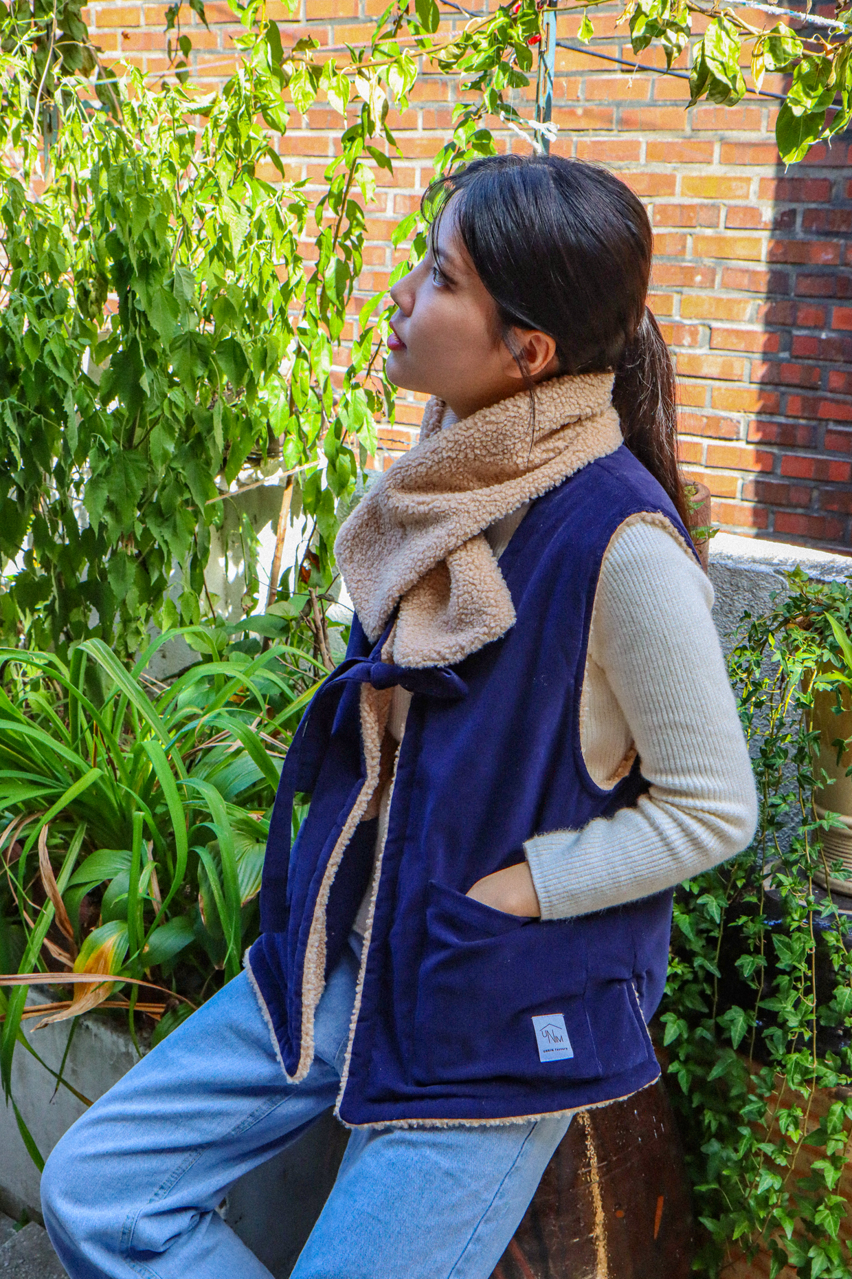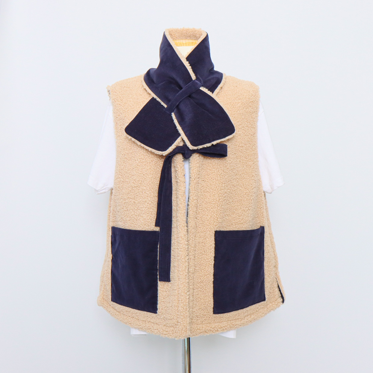 与温暖的毛绒围巾相配,更加提升温馨氛围的背心。无需额外费用,成套提供就是这样。