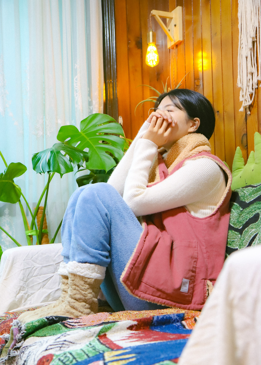 穿上去就像在被窝里一样柔软宽松,即使搭在厚内搭上也毫无束缚,非常舒适。