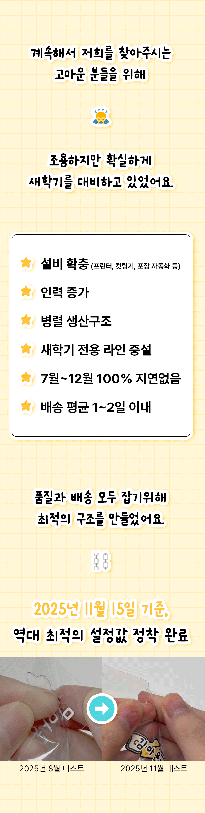 제작·출고 과정을 충분히 경험하고 준비해왔습니다.