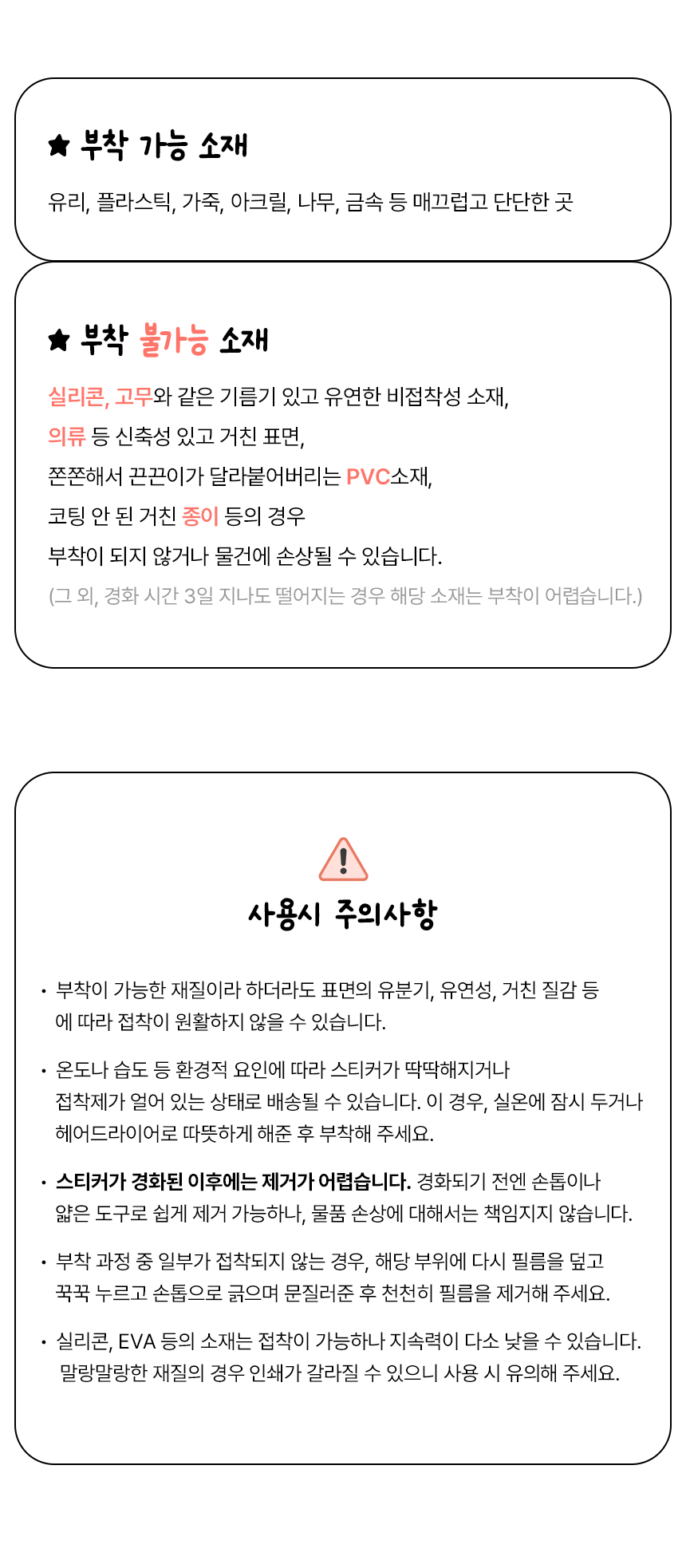Q. 붙일 수 있는 재질을 말해주세요.
