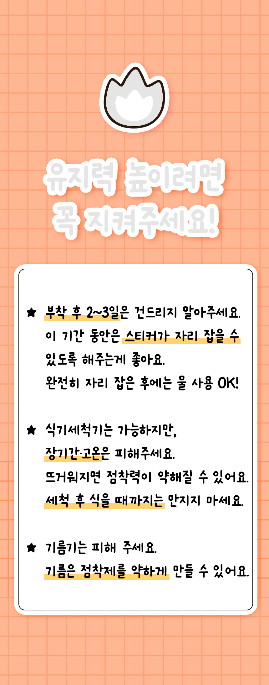 잘못 붙이신 경우 바로 손톱이나 날카로운 것으로 긁어서