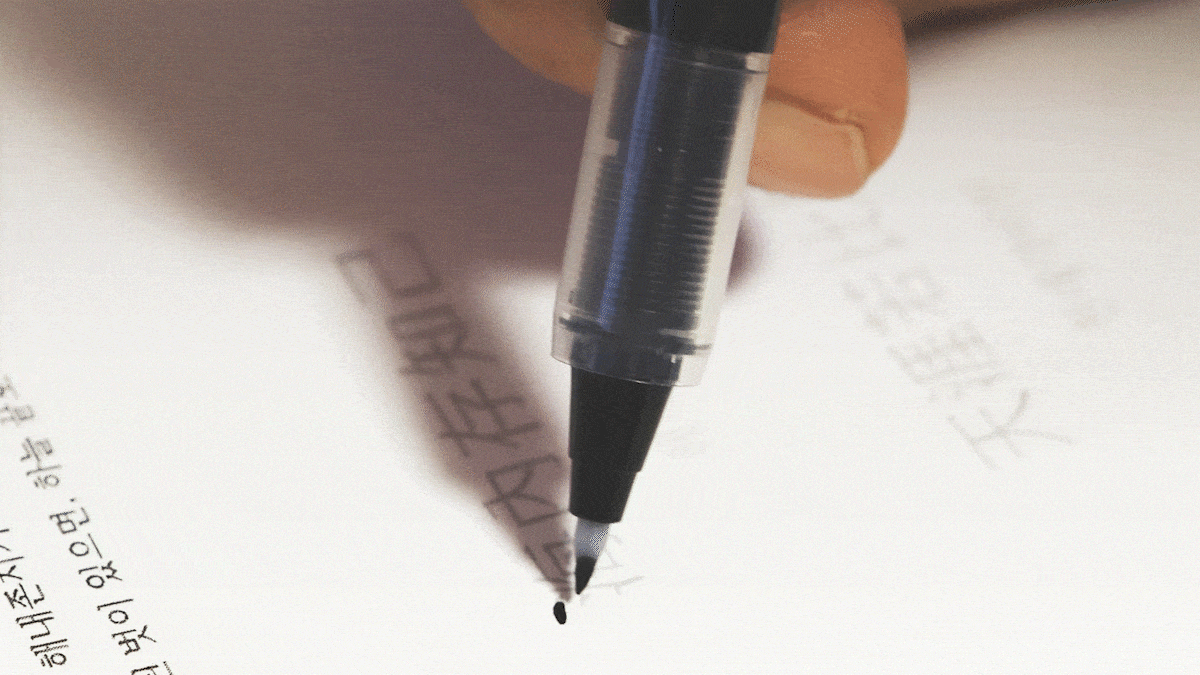 A. 연필·볼펜·젤펜·사인펜·만년필·붓펜 모두 테스트했을 때 큰 무리 없이 사용하실 수 있습니다. 비침을 최소화할 수 있는 붓펜은 새소식을 통해 공지드릴 예정이니 참고하시면 좋겠습니다.
