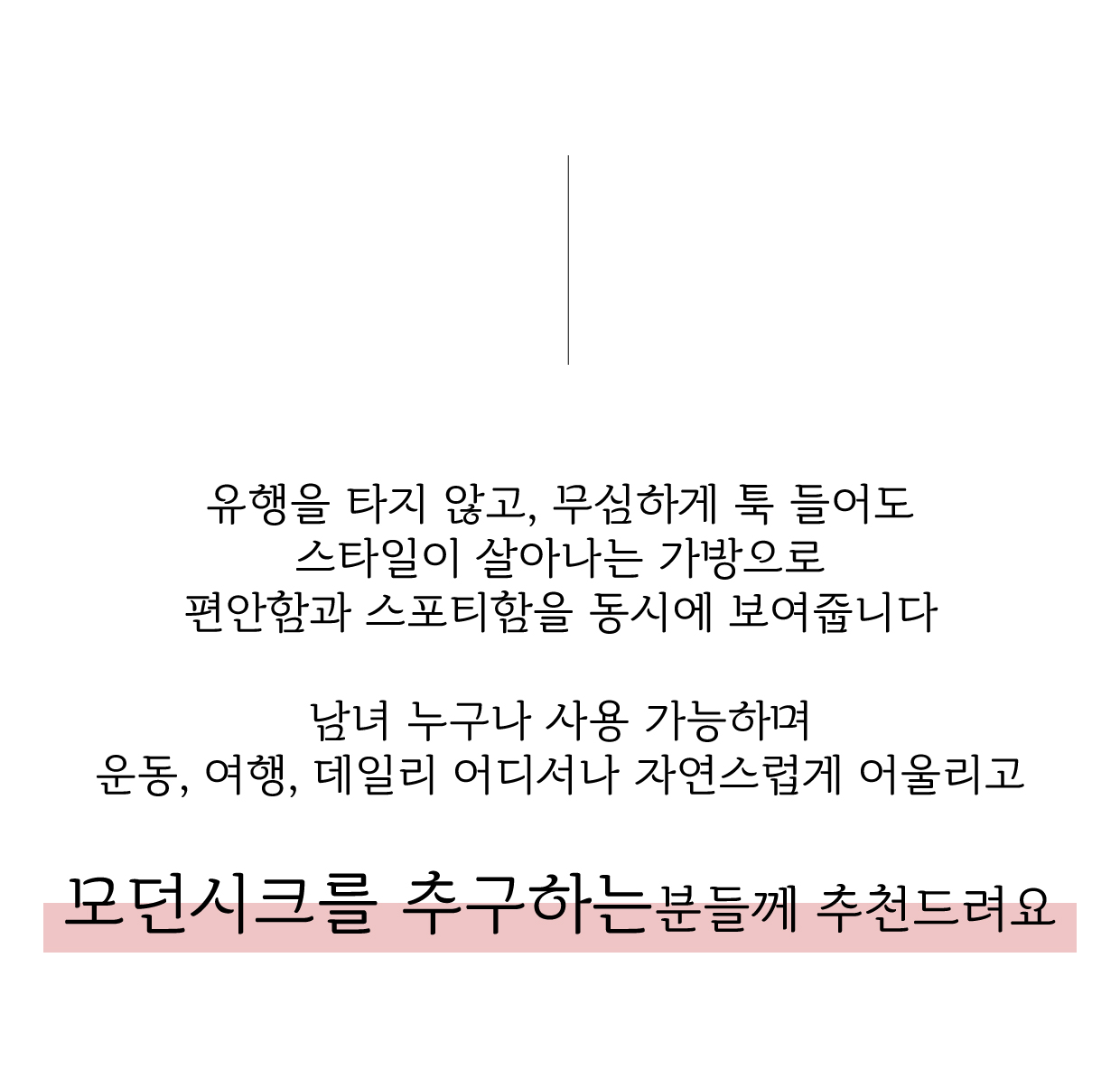 스타일에 구애받지 않고 누구나 부담 없이 편하게 착용할 수 있는 가방