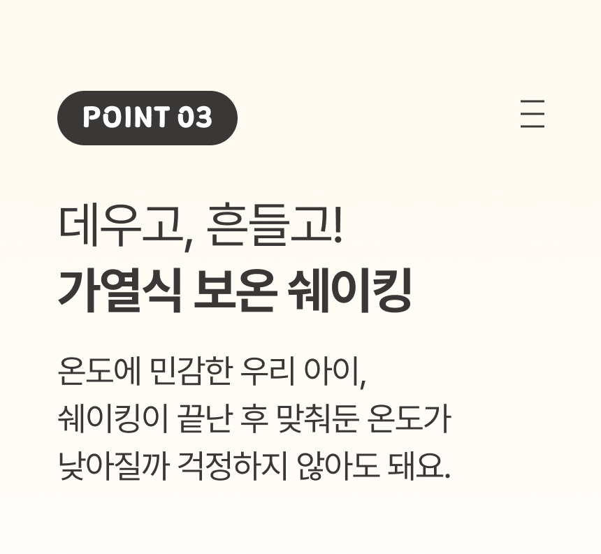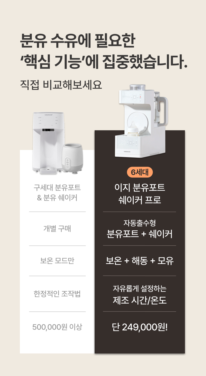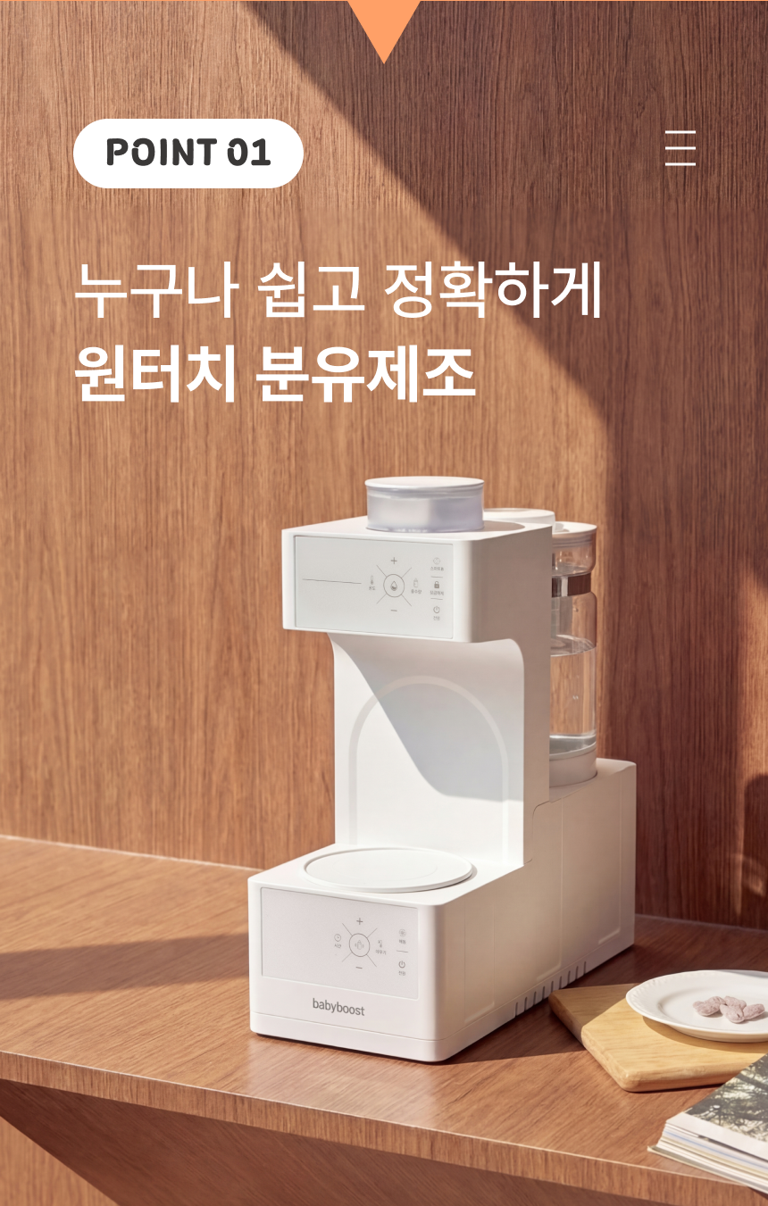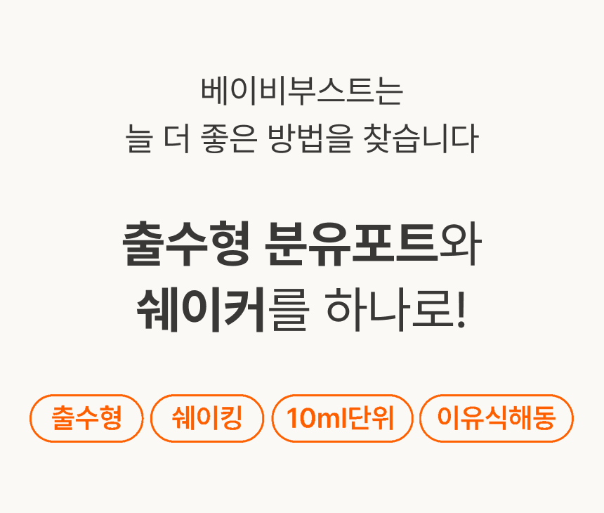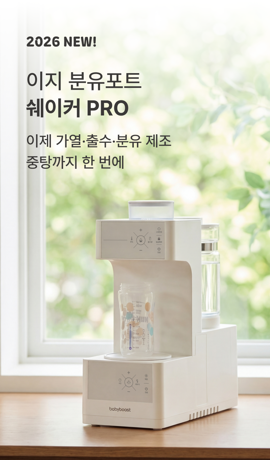 베이비부스트의 분유포트와 스팀소독기를 와디즈를 통해 런칭하였으며, 좋은 반응을 얻었습니다. 이로 인해 새로운 시장 안착에 도움이 되었습니다. 베이비페어 등을 통해 고객과 직접적인 접점을 갖고 다양한 마케팅을 진행하고 있는 브랜드로 점차 고객들과 함께 소통하며 브랜드 인지도를 확보하고 있습니다. 그동안 스마트 분유포트를 판매하면서 당사의 제품을 사용하고 있는 고객들의 피드백을 받아 보완하고 개선하여 신제품 이지 분유포트 쉐이커 프로를 고안했습니다. ‘국내 최초 분리형 정량출수 분유포트’에 이어 고객들의 의견을 반영하여 업그레이드 된 ‘국내 최초 분리형 정량출수 분유포트와 분유 쉐이커가 결합 된 상품’을 출시하게 되었습니다. 이지 분유포트 쉐이커 프로는 한번의 터치로 정확한 물의 양과 최적의 온도를 맞춰주는 분유포트의 장점과 세척이 편리한 주전자형 포트의 강점이 결합된 신개념 분유포트에 분유 쉐이커를 결합하여 사용자 어느 누구나 쉽게 쓸 수 있는 제품이니 많은 관심 부탁드립니다.