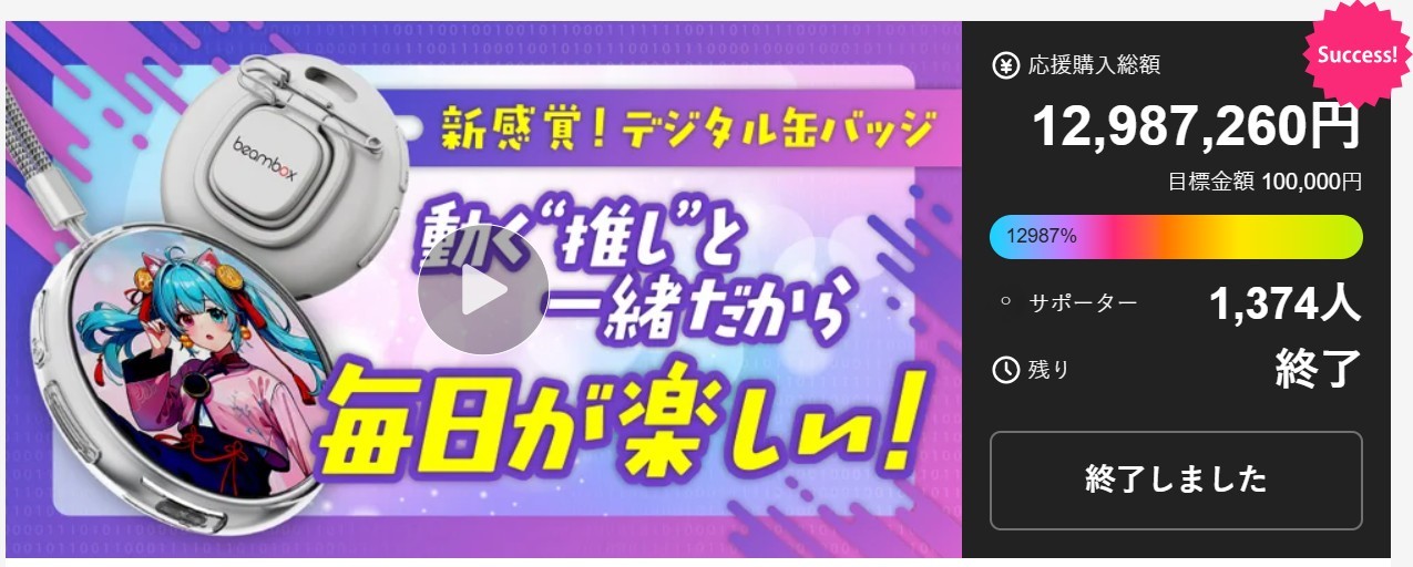 已在日本Makuake平台实现了超过1亿韩元的众筹,