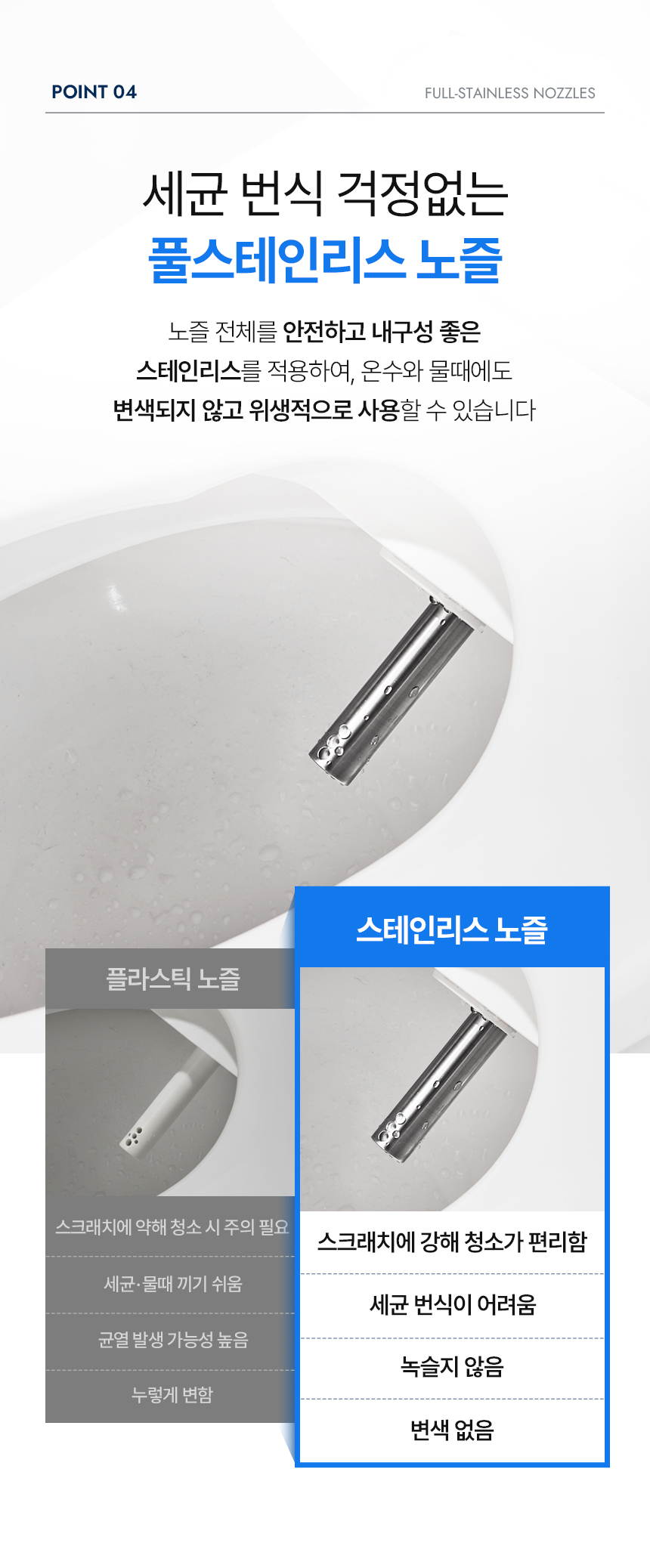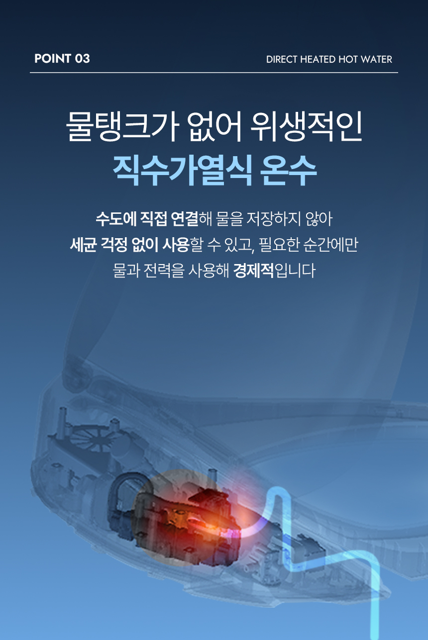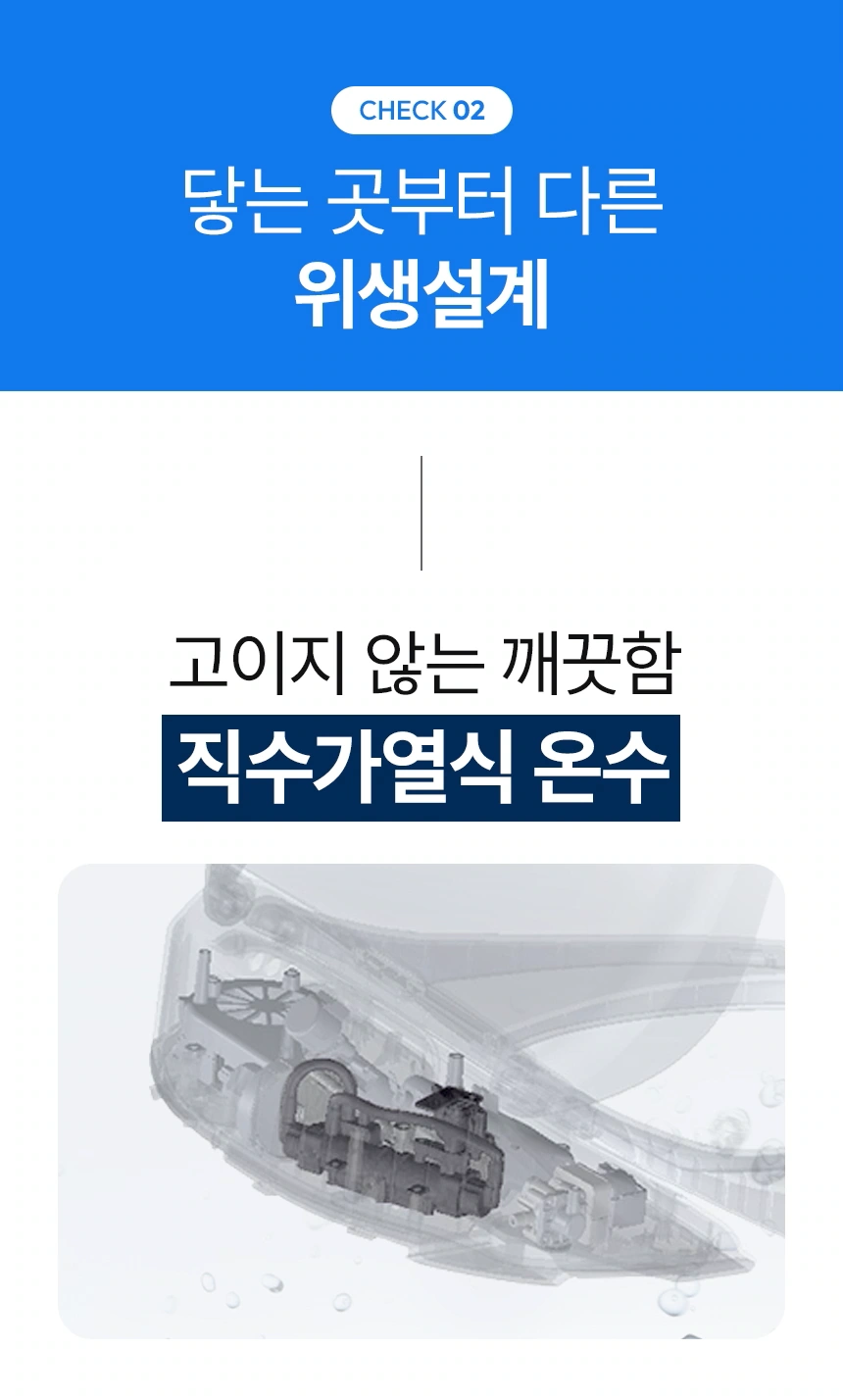 독자적인 기술로 완성한 '방수 6등급' 비데를 개발해 방수비데라는 새로운 기준을 세웠고, 스팀비데를 통해 위생의 정점을 보여드렸습니다.