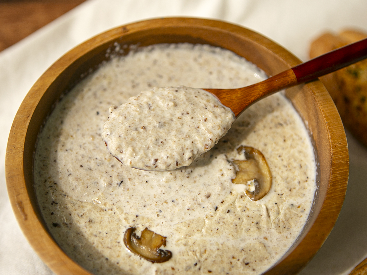 버터와 밀가루로 루를 만들어 베이스로 사용하는 대신 버섯을 아낌없이 사용해 텁텁한 밀가루만 대신 고소한 맛을 극대화했어요!