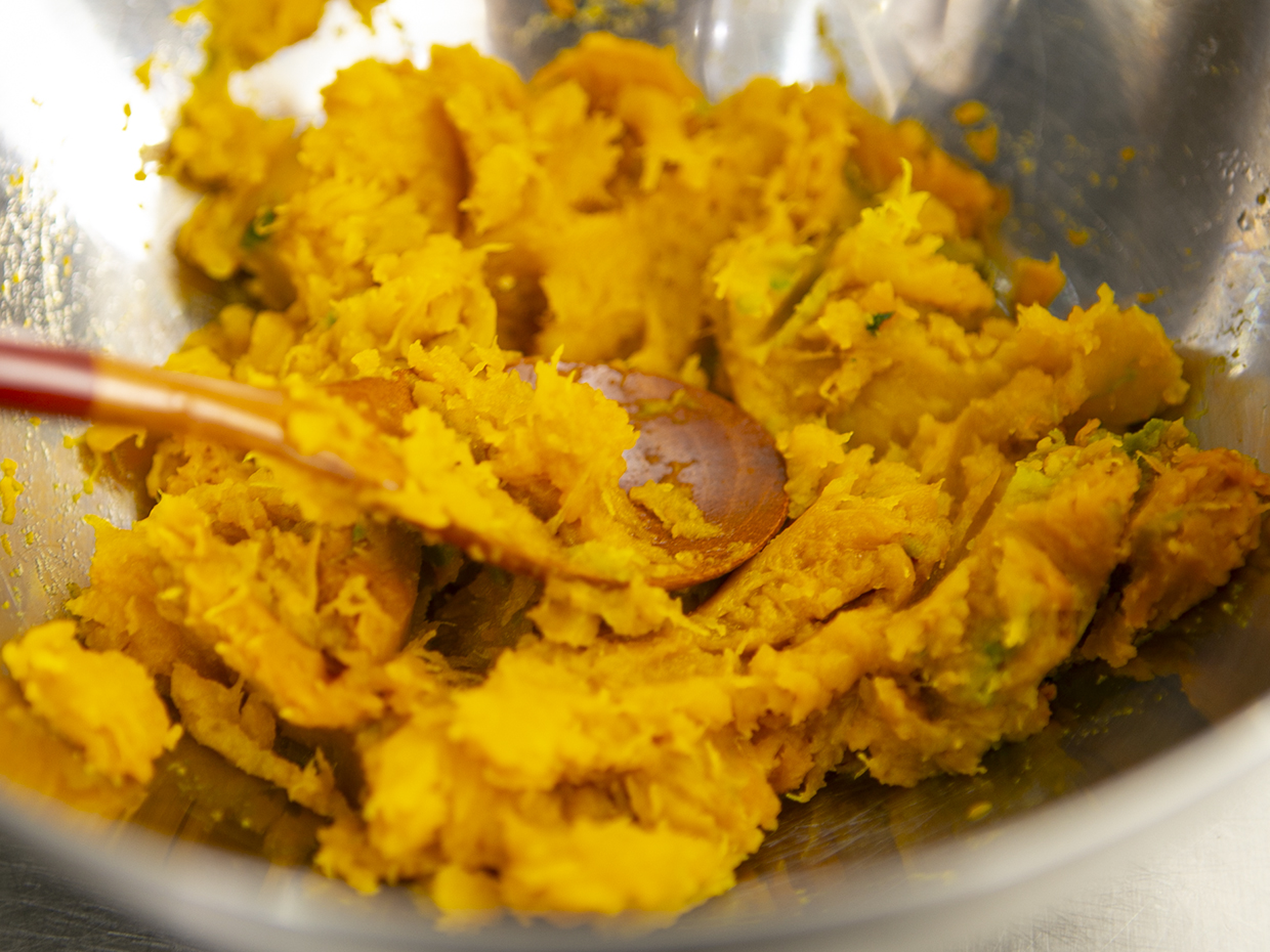 호박을 쪄서 만드는 방법이 아닌 호박을 오븐에 초벌로 구워 만드는 방법으로 호박자체의 맛을 끌어올려주는 제조방법을 선택했어요!