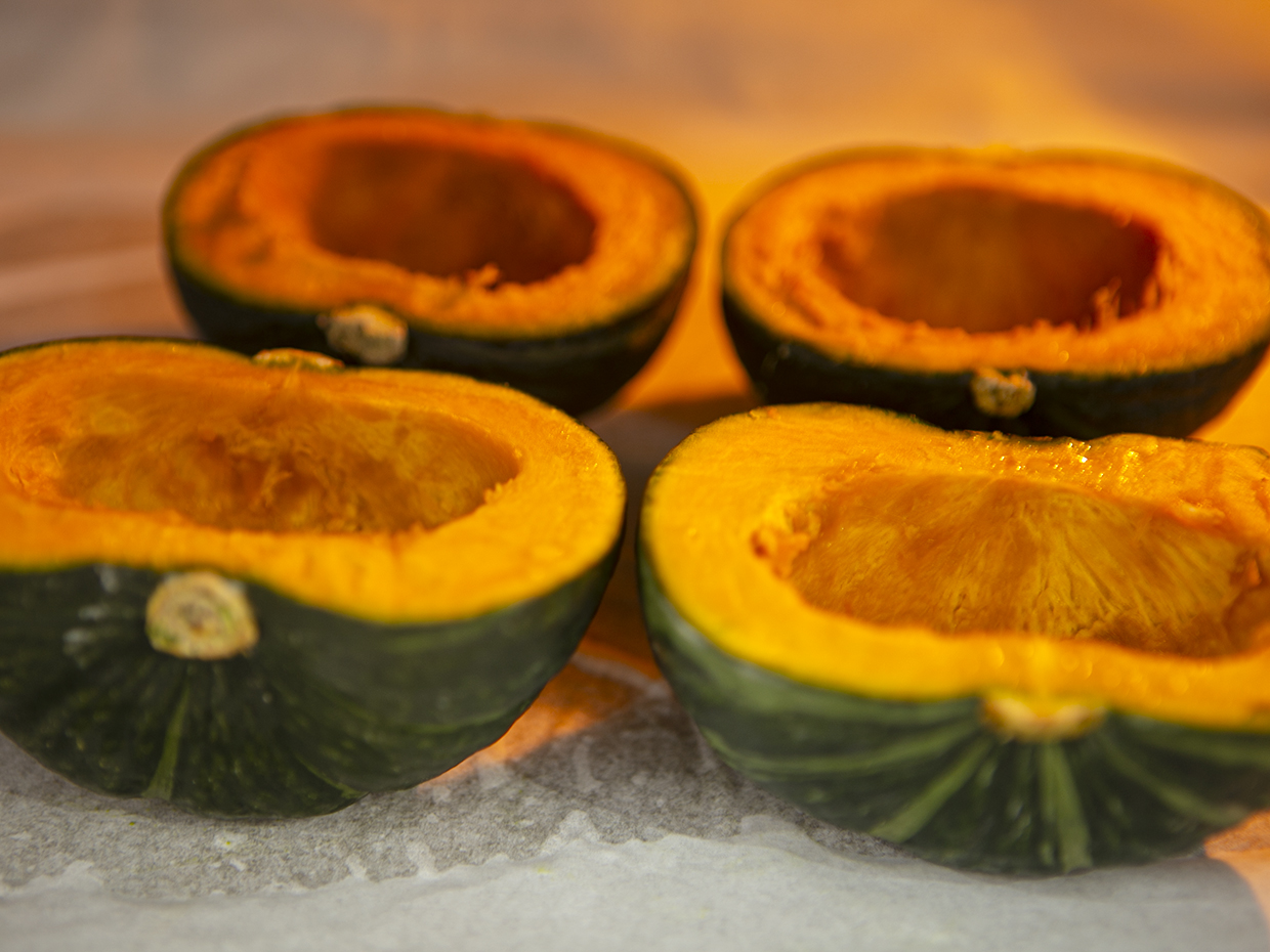 오븐에 구워 조리시간과 제조과정은 번거롭고 길어지지만 설탕을 넣지 않고 단호박 자체의 단맛을 올려주기 위한 정직하지만 시간이 배로 걸리는 손떨리는 시간이랍니다;;;