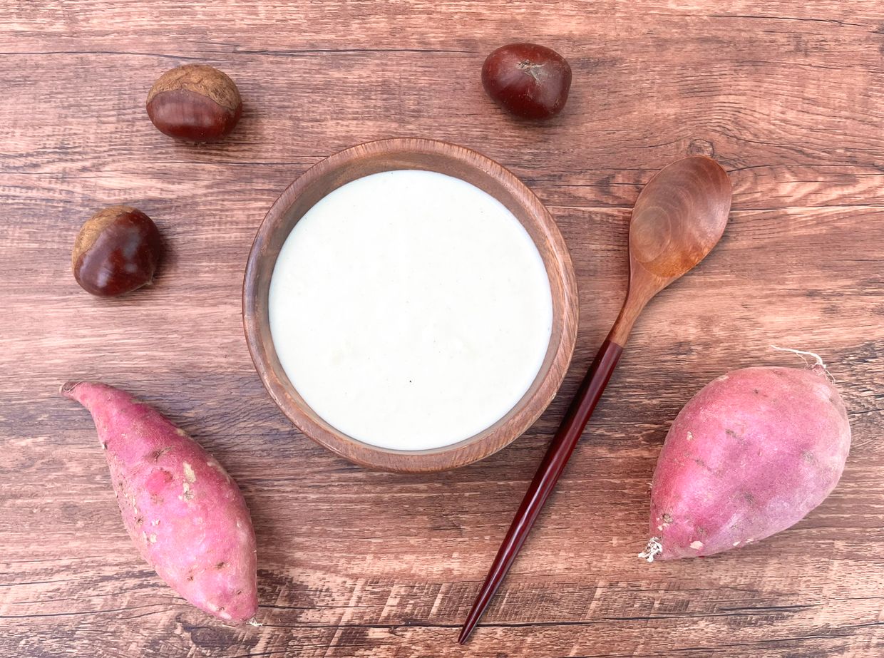 달콤한 고구마와 은은한 단맛의 밤을 함께 섞어 달달한 꿀고구마 밤스프를 만들었어요.