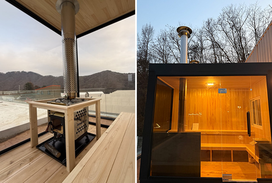 자작나무와 참나무 장작이 만들어주는 부드러운 열감이 매력적입니다. 돌 위에 물을 부어 스팀을 만드는 로일리 시스템으로 피부 관리와 피로 회복에 도움이 됩니다.