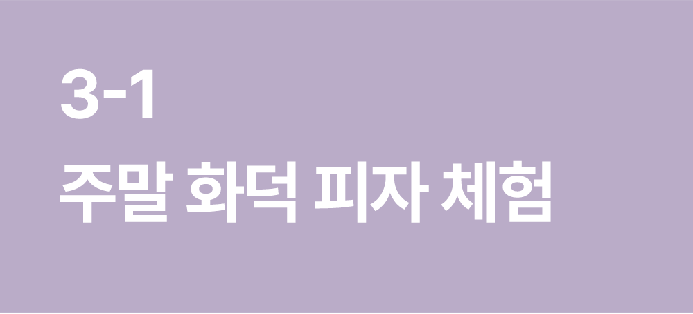 - 피자 체험은 매주 토요일 5시에 있으며 2만원 유료 상품입니다 (토핑 및 반죽 등 피자 재료 일체 제공)