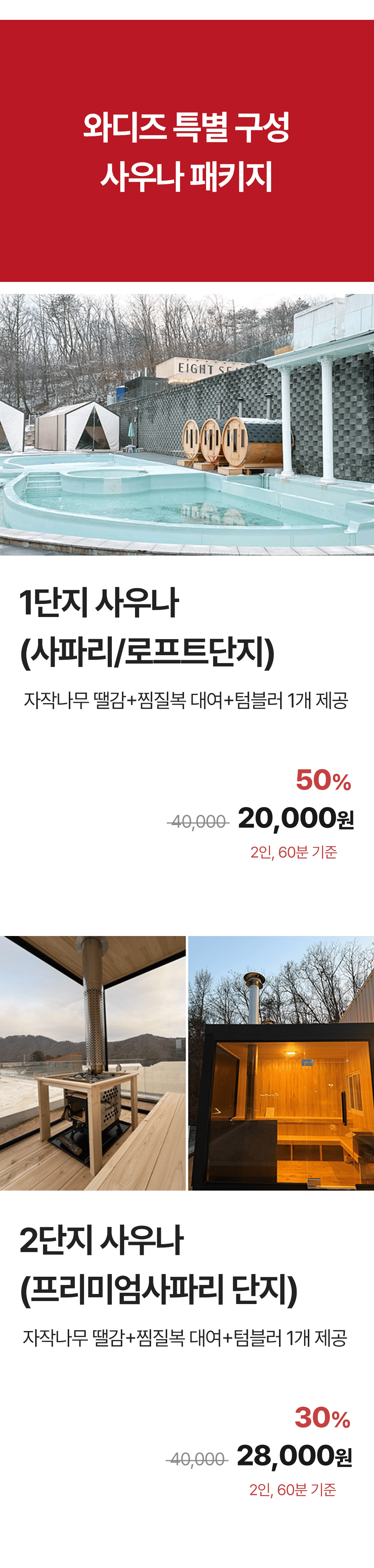 사우나 인원이 추가될 경우 현장에서 1인 15,000원입니다 (정가: 20,000원)