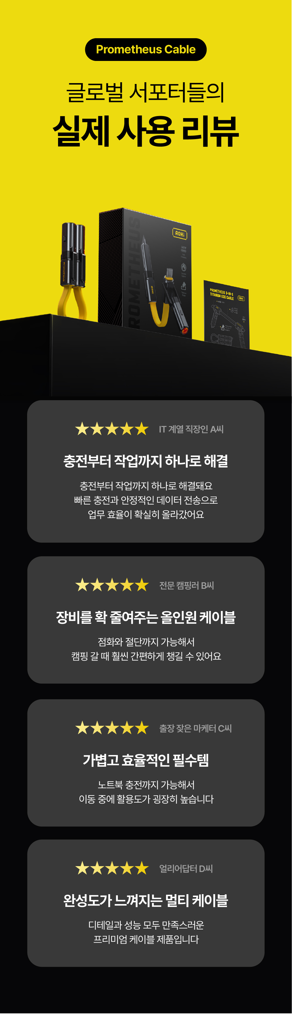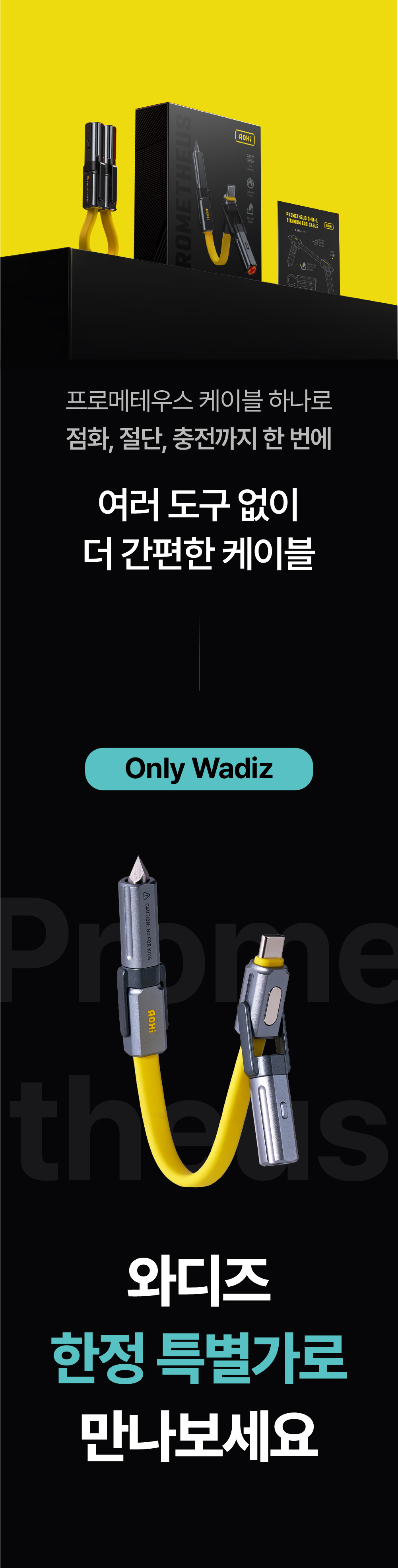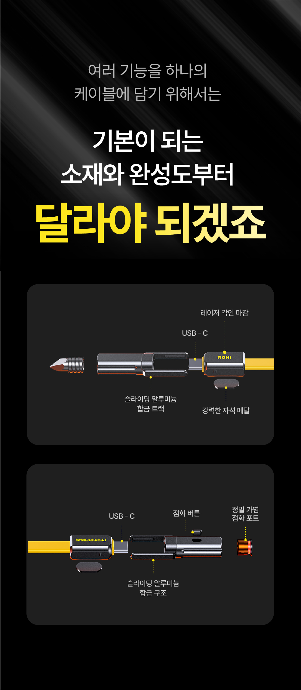 이제 AOHi는 티타늄 소재와 멀티 툴 기능을 결합한 3in1 케이블을 통해, 일상의 데스크 위부터 거친 아웃도어 환경까지 아우르는 '세상에 없던 진화된 연결'을 선보입니다. 글로벌 시장이 선택한 압도적인 기술력과 타협하지 않는 품질, 그 혁신적인 결과물을 지금 와디즈에서 직접 경험해 보시기 바랍니다.