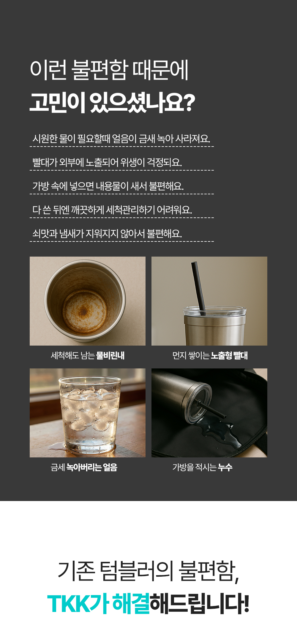 TKK는 앞으로도 불편함을 해결하는 도구로서의 텀블러를 만든다는 철학을 가지고, 더욱 진화된 제품을 선보일 것입니다.