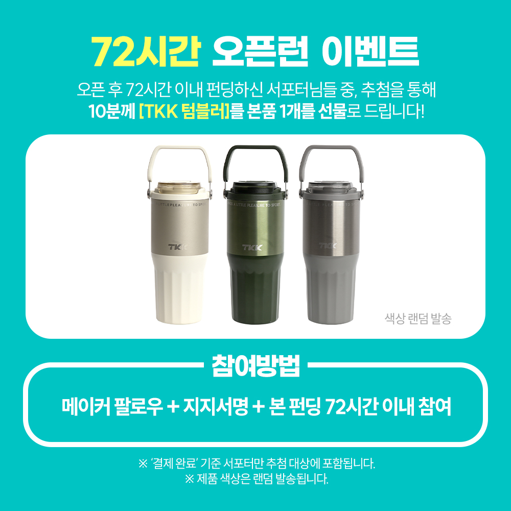 그 결과, 이번에 와디즈를 통해 선보이는 텀블러는 최대 50시간 보냉, 원터치 위생빨대 구조, 세라믹 코팅, 완전 밀폐 설계 등 아웃도어 환경에서도 믿고 사용할 수 있는 TKK만의 기술과 경험이 집약된 제품입니다.