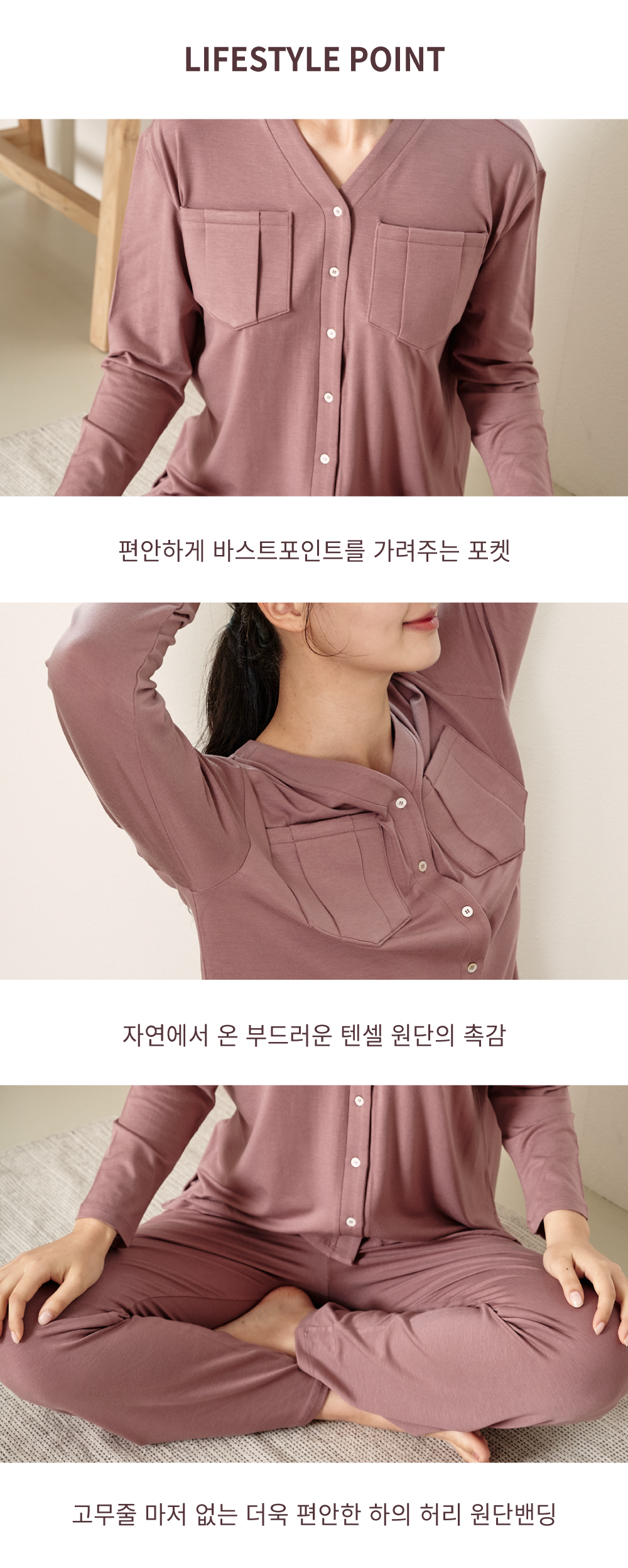 - 겨울의 포근함을 담은 텐셀 커플잠옷을 만들게 되었어요. 여성들의 일상적 불편함을 해결하는 노브라 잠옷에서 더 발전된 니플패치 커플 잠옷이에요! 이제 편안해야 할 집에서, 편안한 사람과 함께, 편안하면서도 감성적인 [릴렉스 파자마-겨울 버전]을 만나보세요 :)