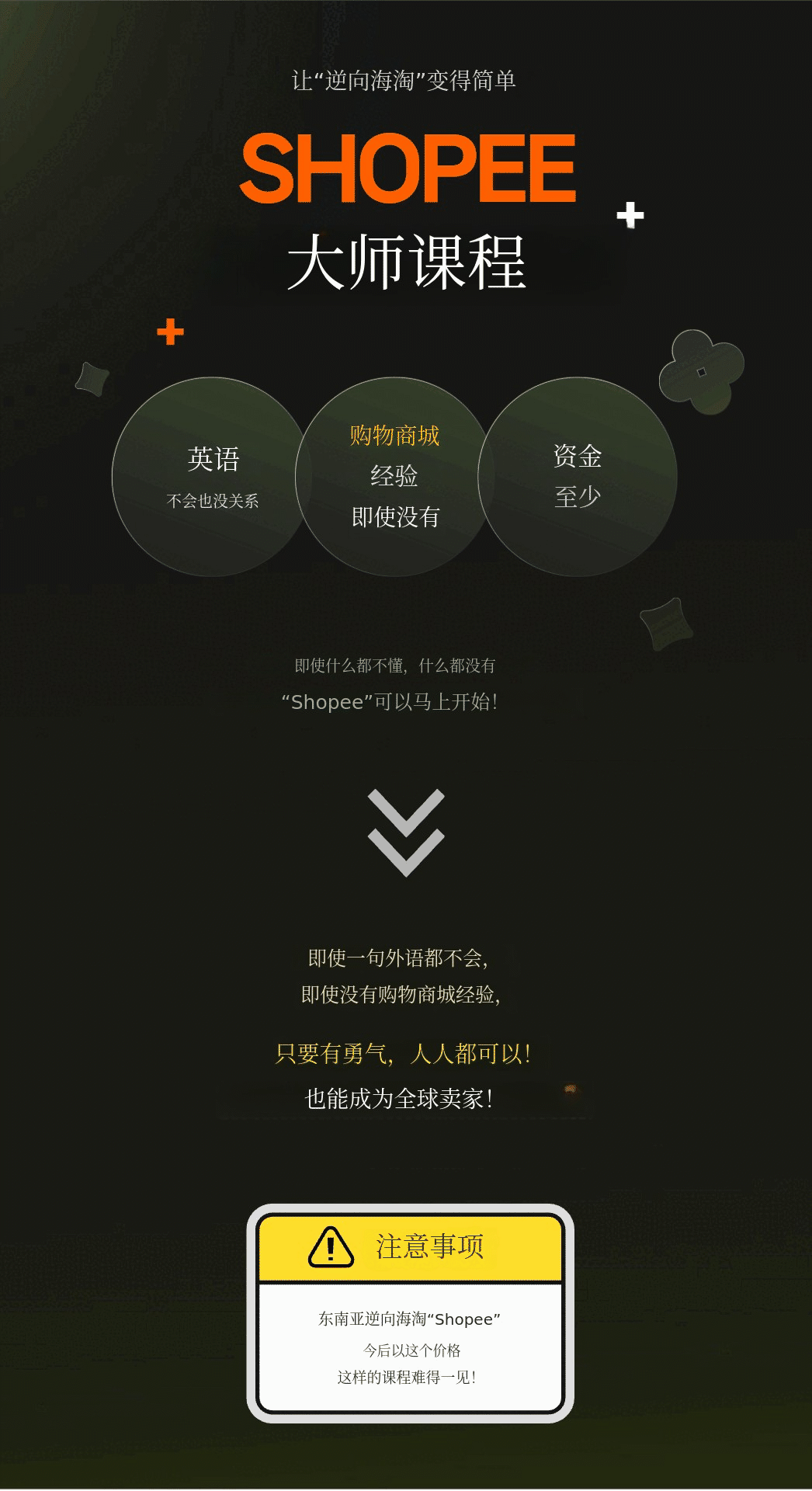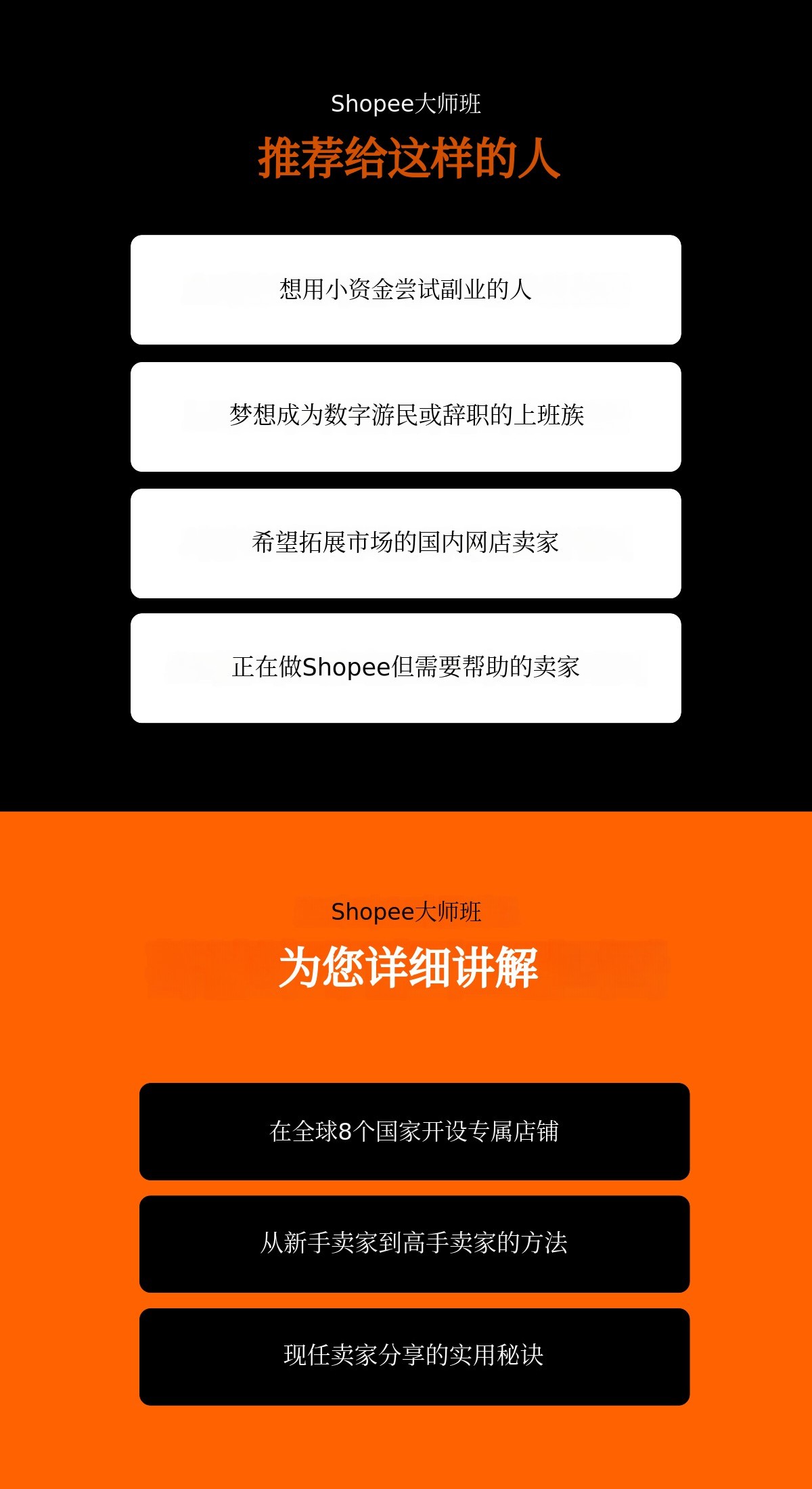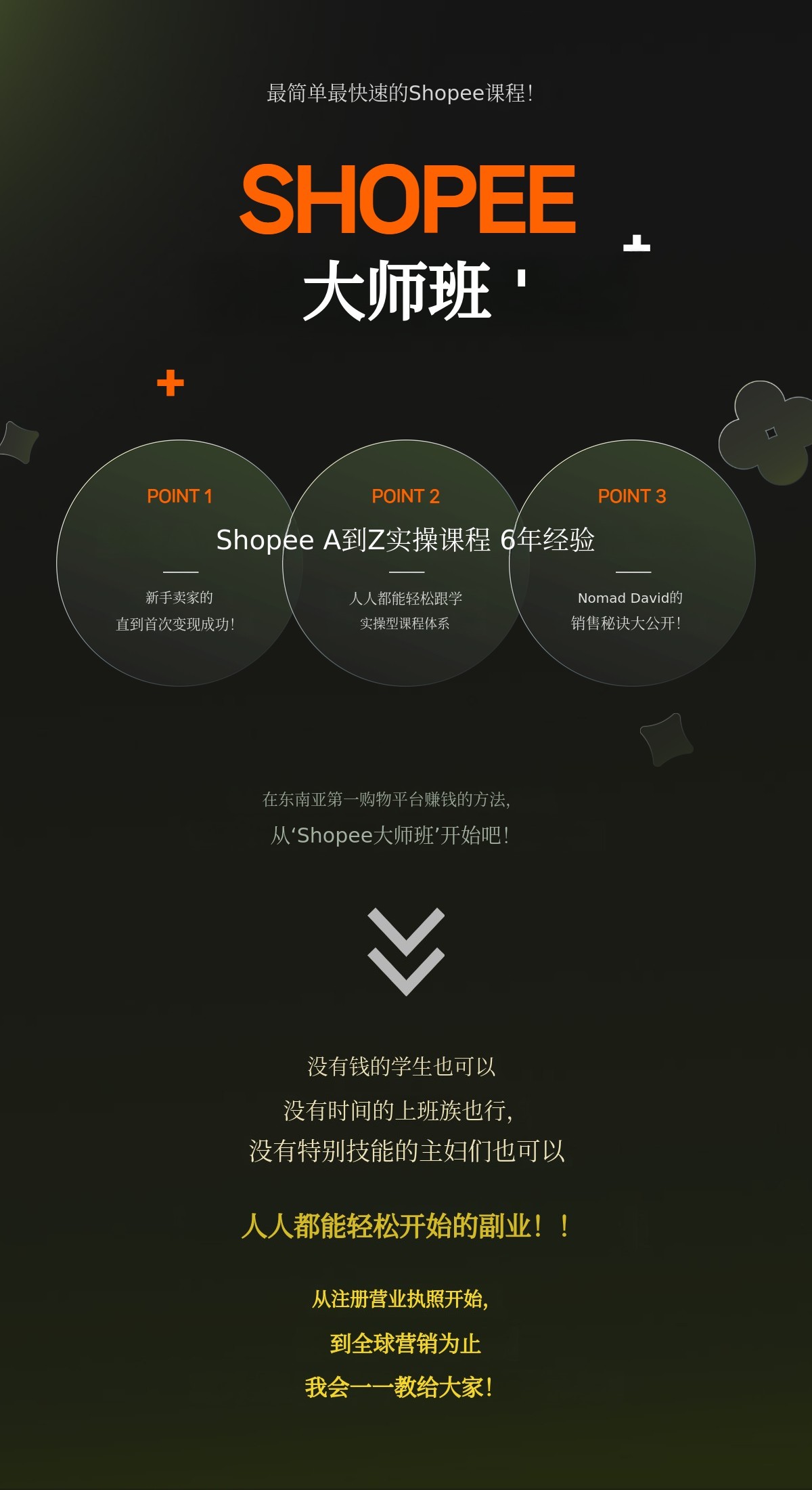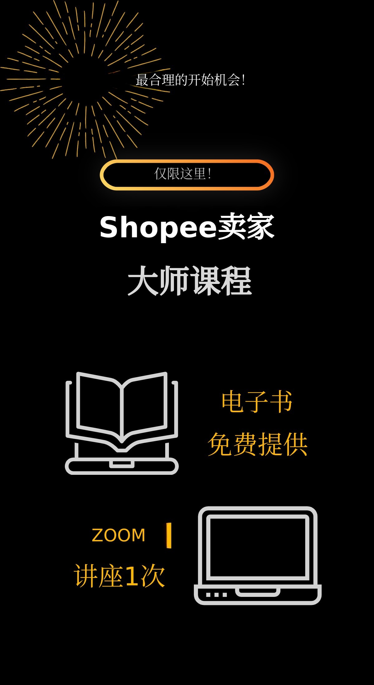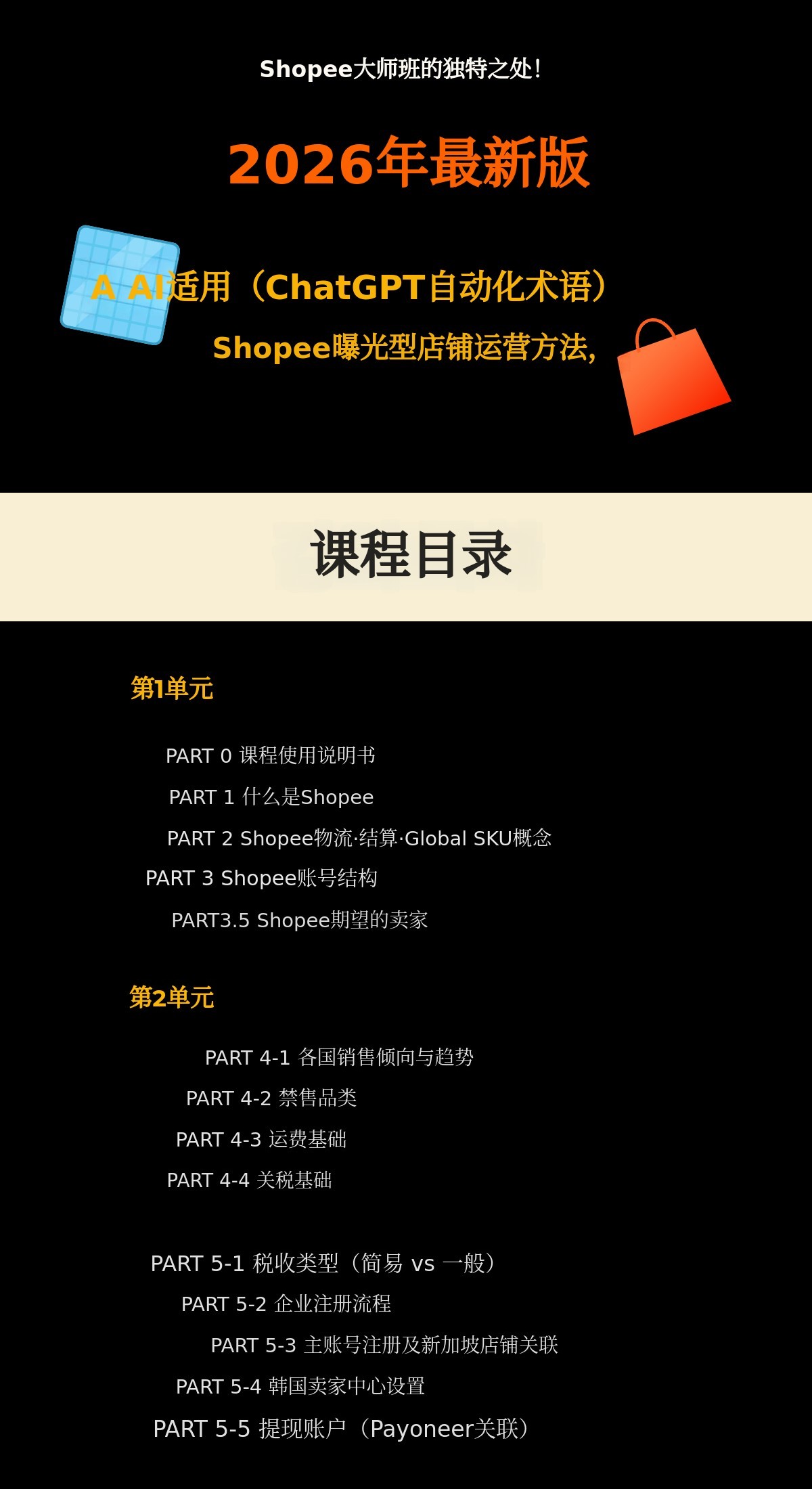 1. 📚 Shopee大师班课程 - 2026最新运营路线图及AI自动化策略 2. 🚀 提升销售与运营效率 - 反映Shopee结构变化,分步实操提升业绩 3. 🎁 最新版本及专属福利 - 含免费电子书、在线直播及实时反馈