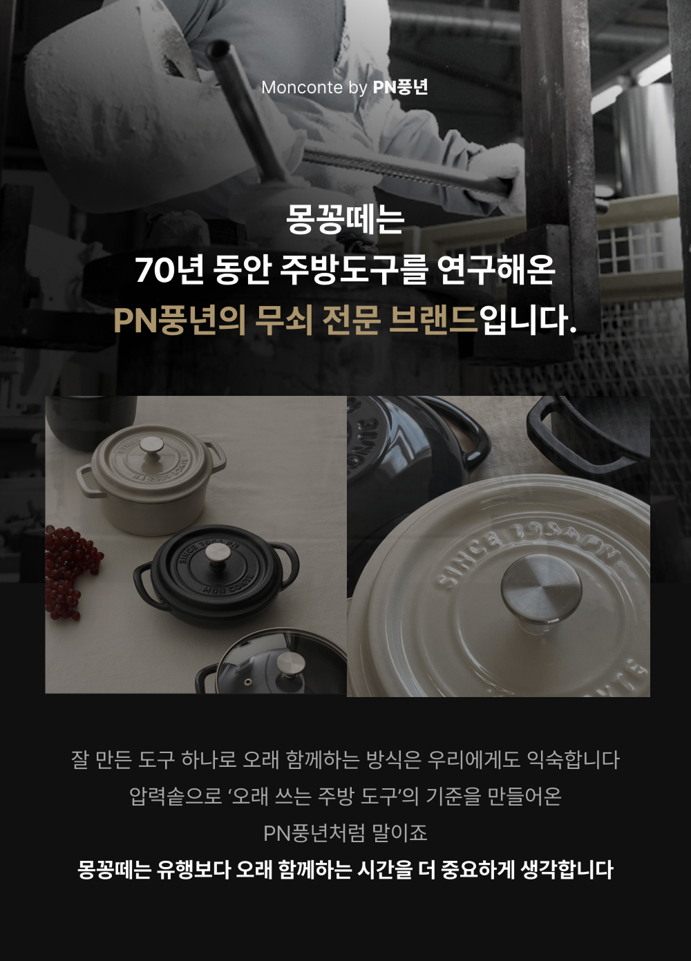 저희 PN풍년은 1954년 손주물 압력솥을 시작으로 주방용품 전문 기업으로 성장하며 대한민국 밥상의 역사와 함께해온 기업입니다. 아마 우리 어머니 세대에서는 '풍년 압력밥솥'이라고 하면 바로 아실 거예요. 저희 기술로 만든 제품은 뛰어난 열전도율과 열보존율로 요리의 맛을 깊게 살려주어 오랜 시간 큰 사랑을 받았습니다. 하지만 한 가지 안타까운 점이 있었습니다. 이제 막 요리의 즐거움을 알아가는 2030 세대에게는 저희의 고집스러운 기술력을 선보일 기회가 많지 않았다는 것입니다.