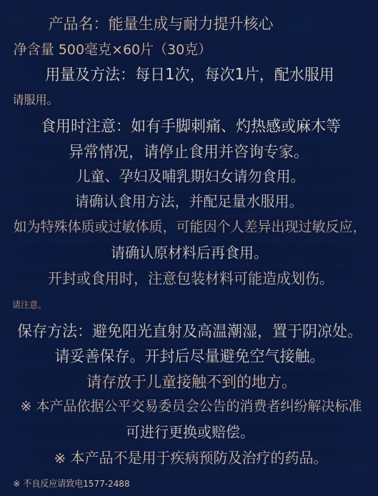 - 由于健康功能食品的特性,难以像专业药品那样产生立竿见影的效果,因此因个人差异而产生的效果感受差异不被视为回报缺陷。