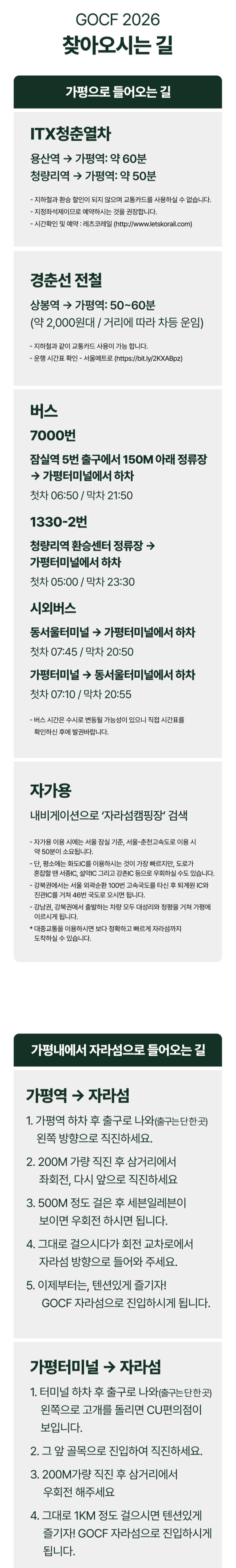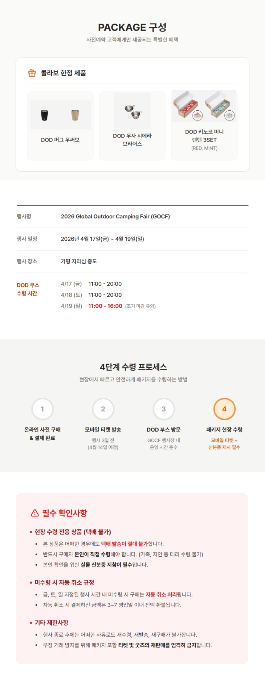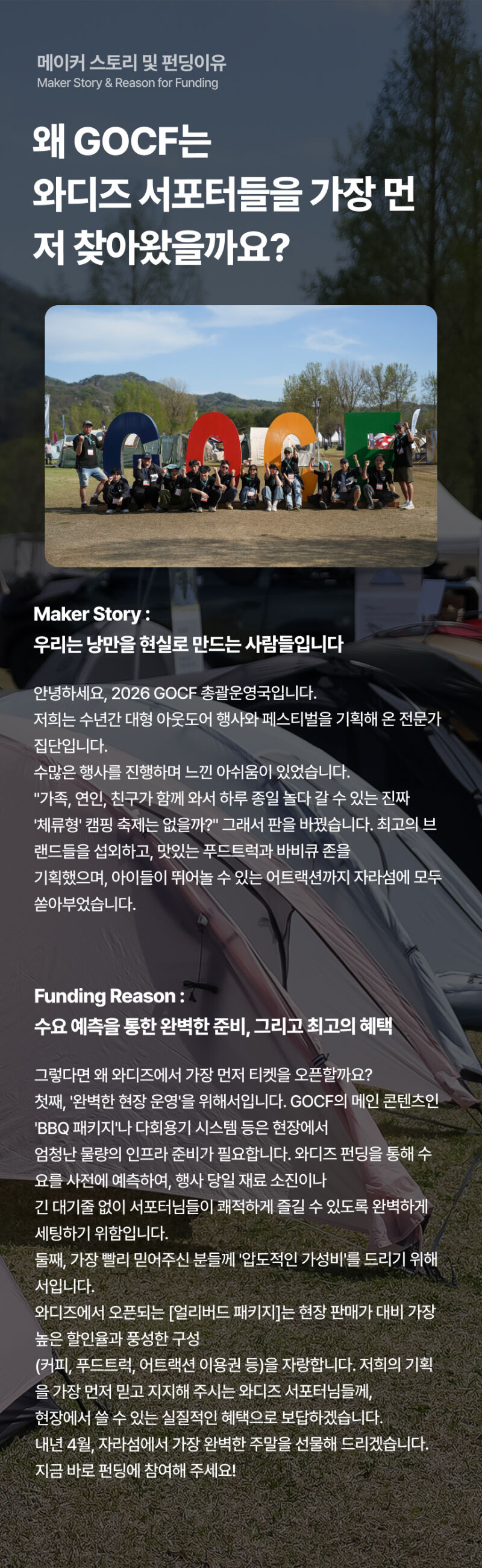 1. 🏕️ 全球户外露营展 - 在加平Jarasum举办的为期三天大型露营节 2. 🌙 昼夜活动 - 提供多样体验、表演和美食 3. 🎟️ 独家支持者福利 - 免费班车和限量票券