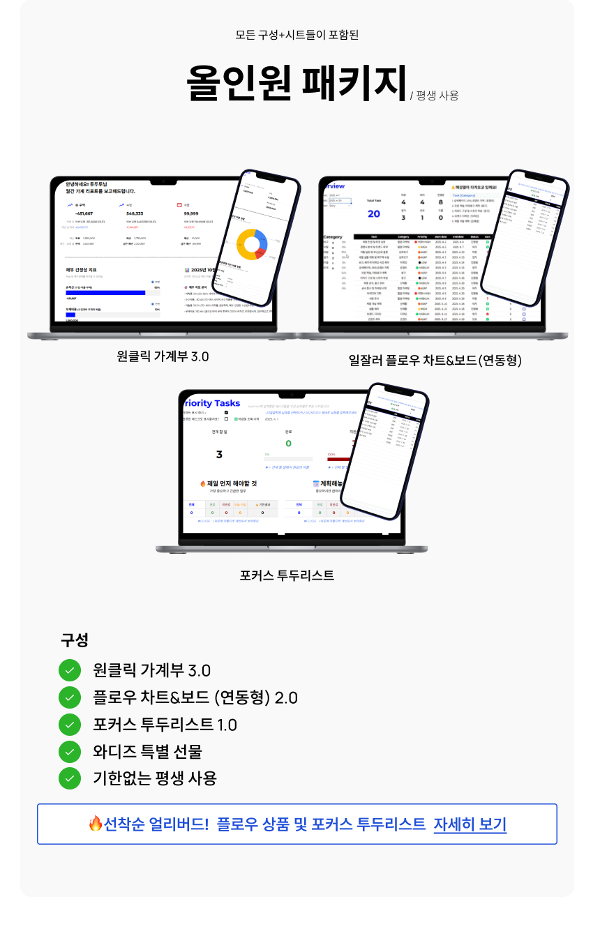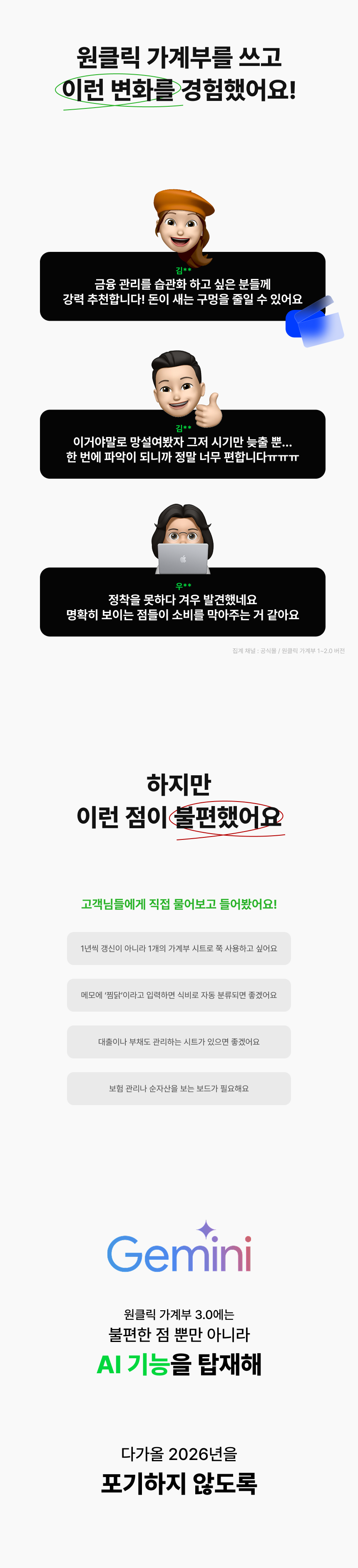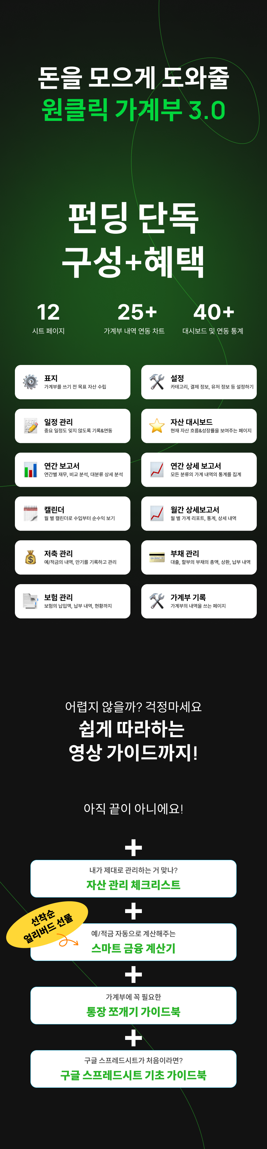 - 원클릭 가계부 3.0 상품은 '구글 스프레드시트' 로 제작되어 구글 계정이 필요합니다.