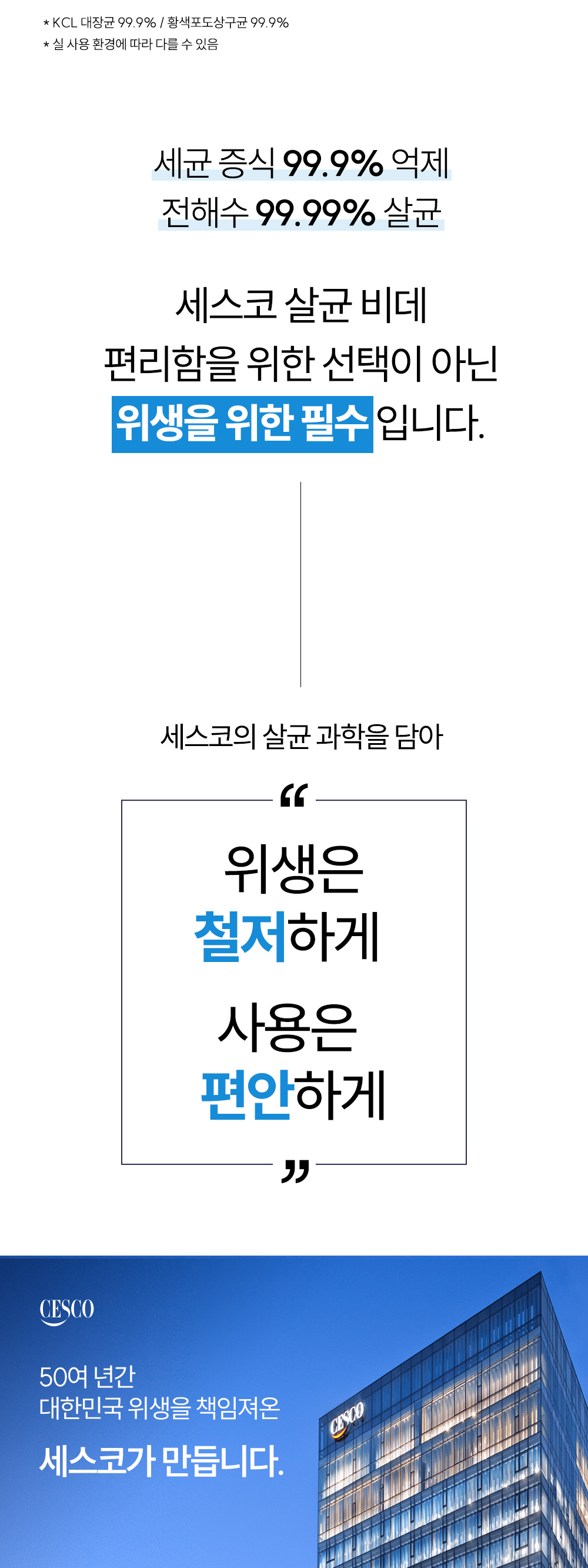 깨끗하고 위생적인 화장실 환경을 위해, 살균은 세스코 비데에 맡기고 언제나 새것처럼 사용하시길 바랍니다.