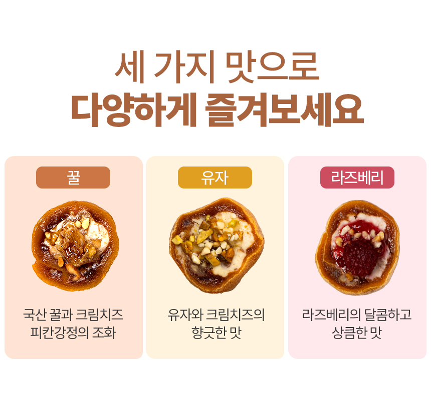 피칸(미국), 유자청(국산), 곶감(상주), 크림치즈(미국), 정제수, 물엿(국내산), 설탕(국내산), 라즈베리잼(수입), 벌꿀집(베트남), 꿀(국내산)
