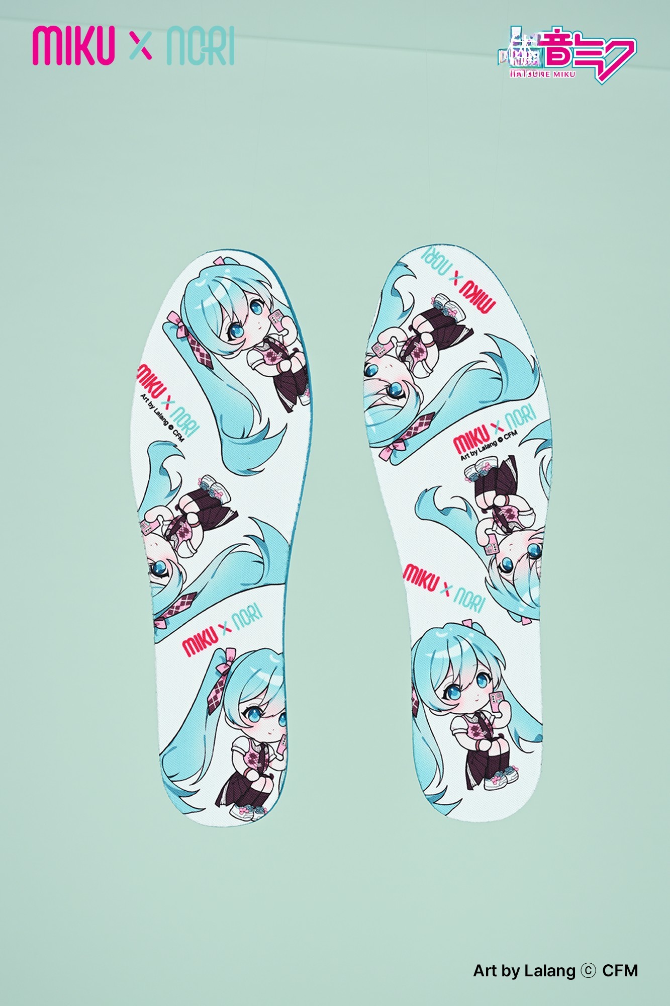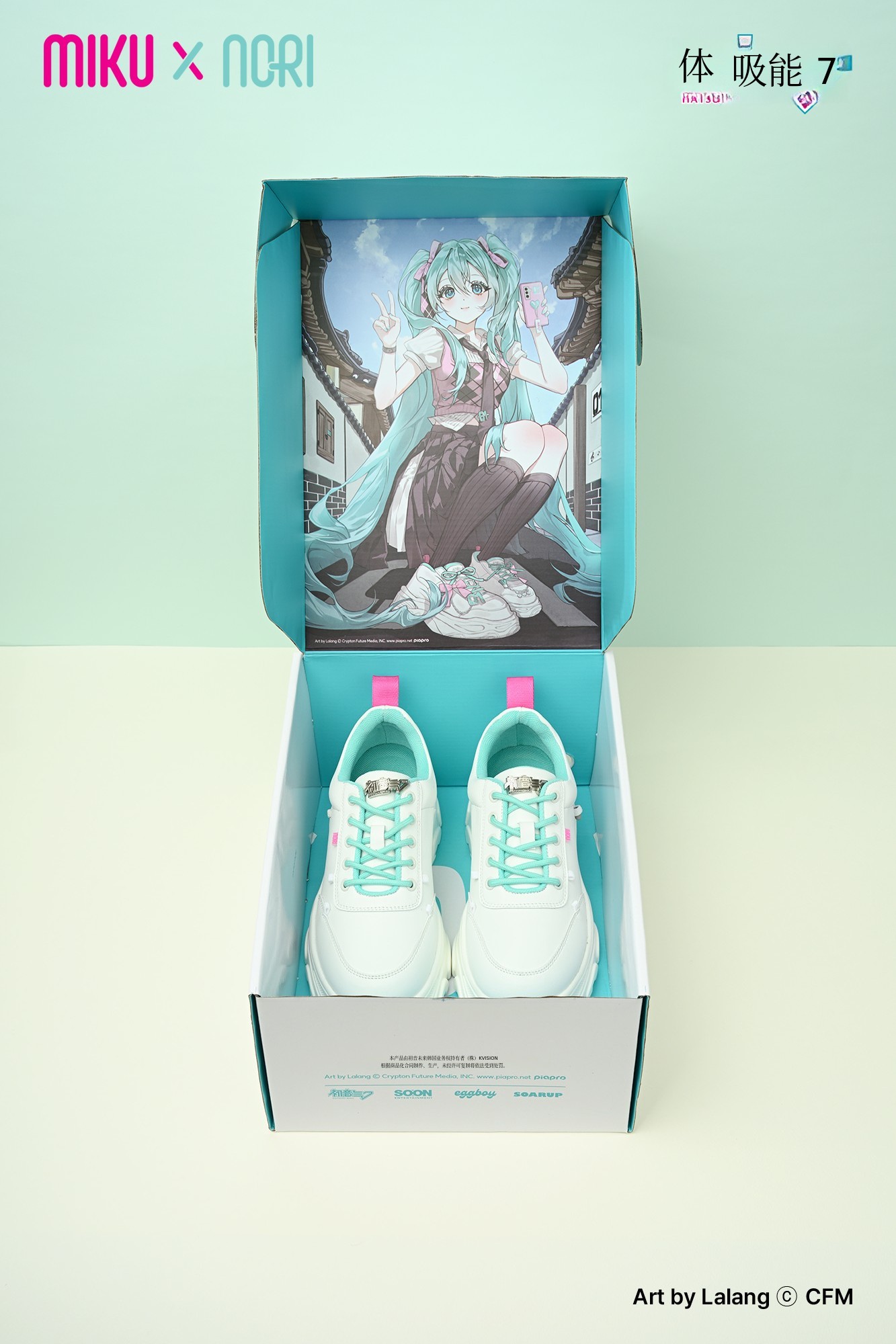 - 制作特性: HATSUNE MIKU x NORI 鞋款为全工序手工制作的手工鞋。由于工艺特性,可能会有细微褶皱、粘合痕迹、轻微划痕,这些不属于产品瑕疵。