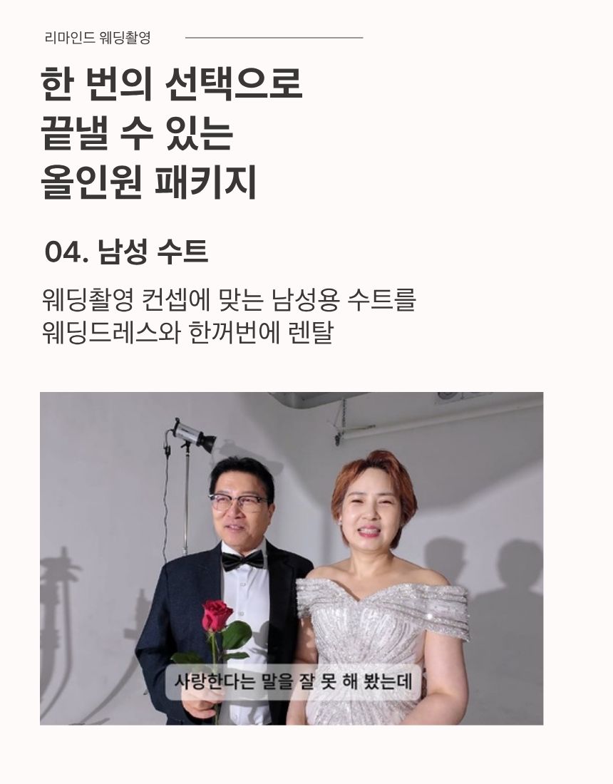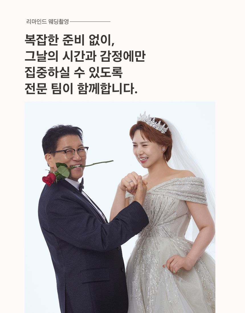 1. 👰 一站式回忆婚礼套餐 - 包含发型、化妆、婚纱和西装准备 2. 📸 感性自然的拍摄体验 - 捕捉超越固定姿势的真实时刻