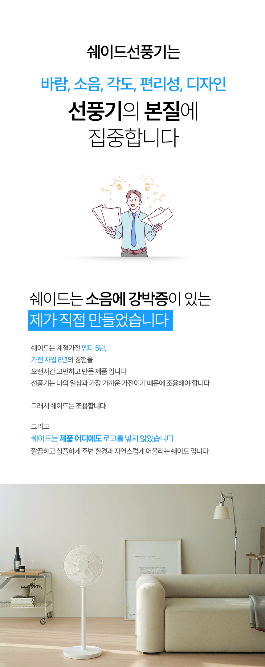 쉐이드는 계절가전 엠디 5년, 가전 사업 8년의 경험을 오랜 시간 고민하고 만든 제품입니다.