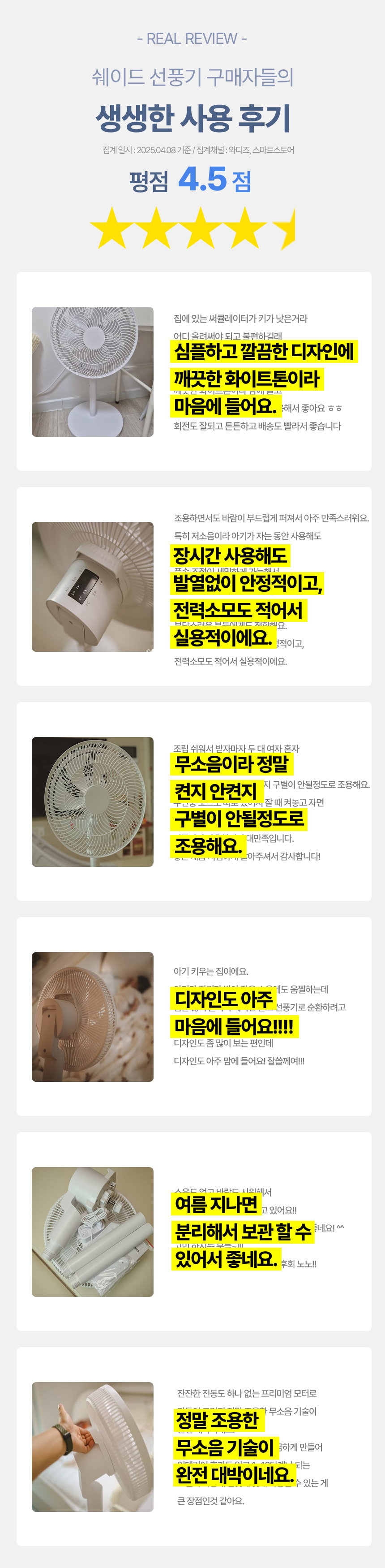 선풍기는 나의 일상과 가장 가까운 가전이기 때문에 조용해야 합니다.