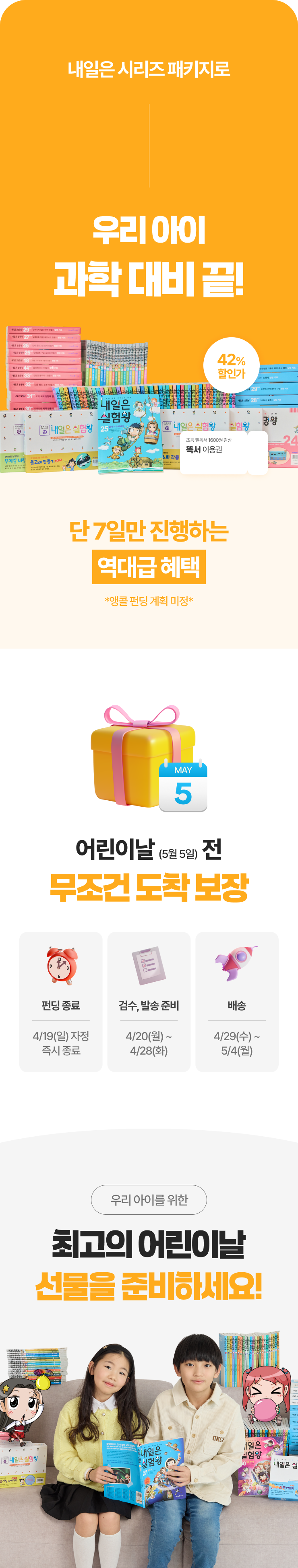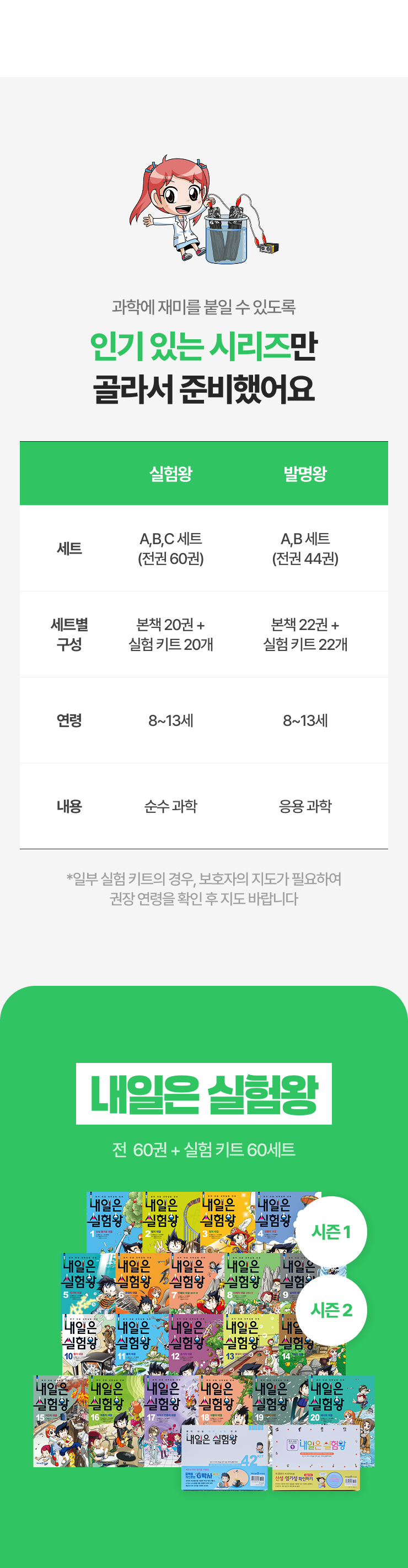1. 🧪 科学实验套装全套 - 内日实验王与发明王全套套装,系统学习 2. 🎯 理科人才培养 - 通过实验与漫画提升科学理解与兴趣 3. 💸 最高42%折扣 - Wadiz独家限量特别早鸟优惠