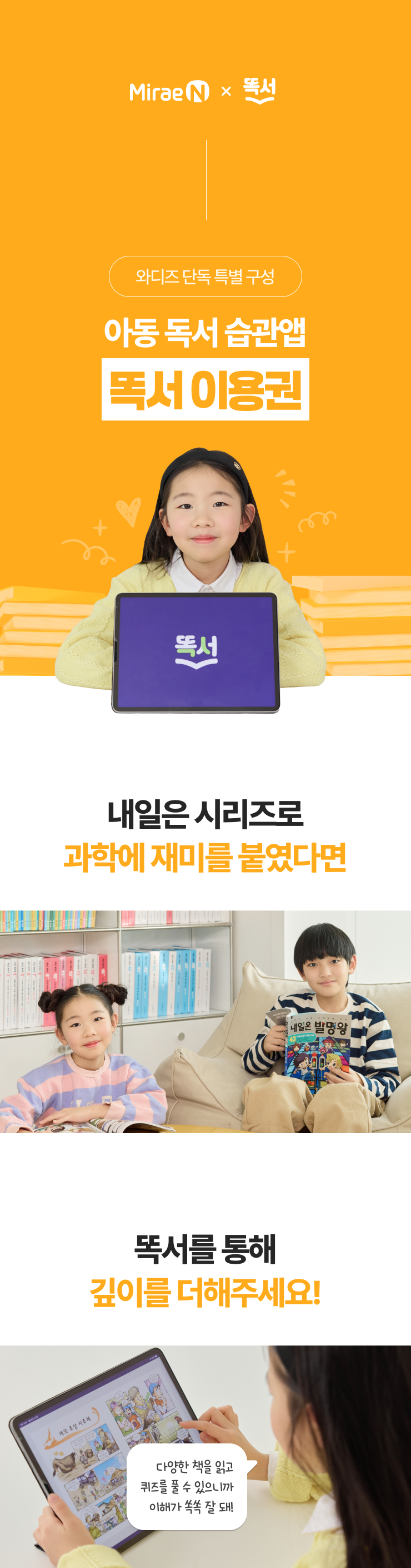 와디즈는 단순한 판매 채널을 넘어, 브랜드의 가치와 이야기를 서포터에게 직접 전달할 수 있는 플랫폼이라고 생각했습니다. 미래엔이 오랫동안 쌓아온 교육 콘텐츠의 철학과 방향성을 새로운 방식으로 소개하고, 독자와 더욱 가깝게 소통하고자 와디즈를 선택했습니다.