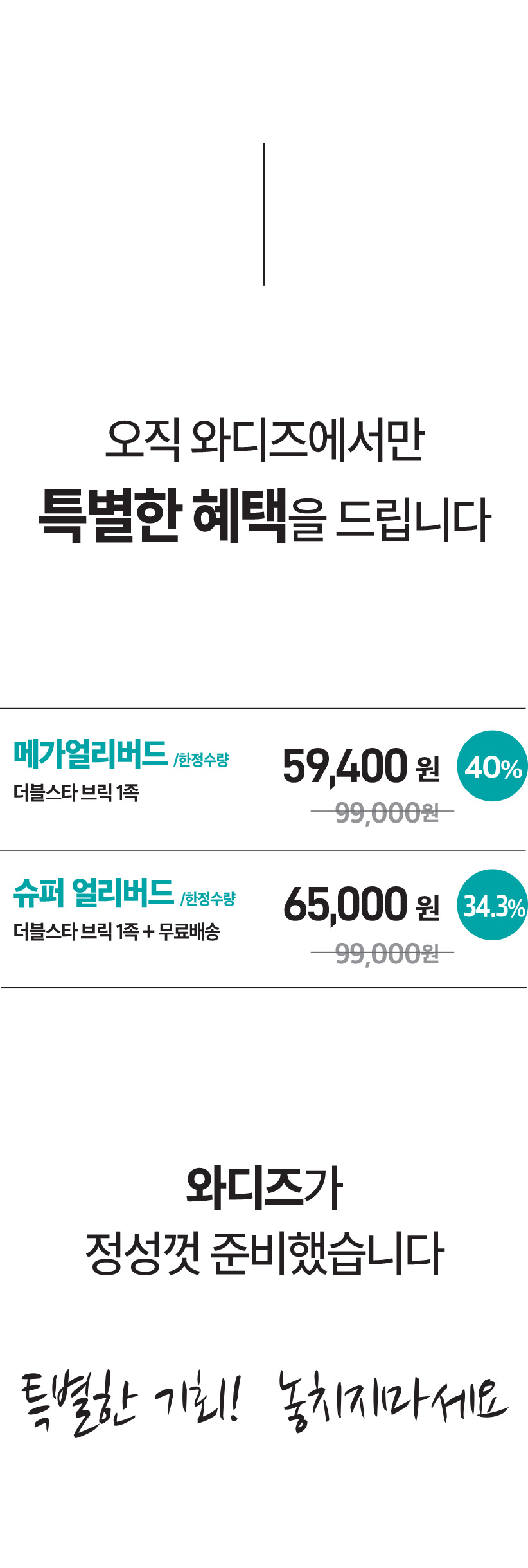 이번 더블스타 브릭 리워드는 와디즈에서만 제공되는 특별 가격 혜택으로 준비되었습니다.