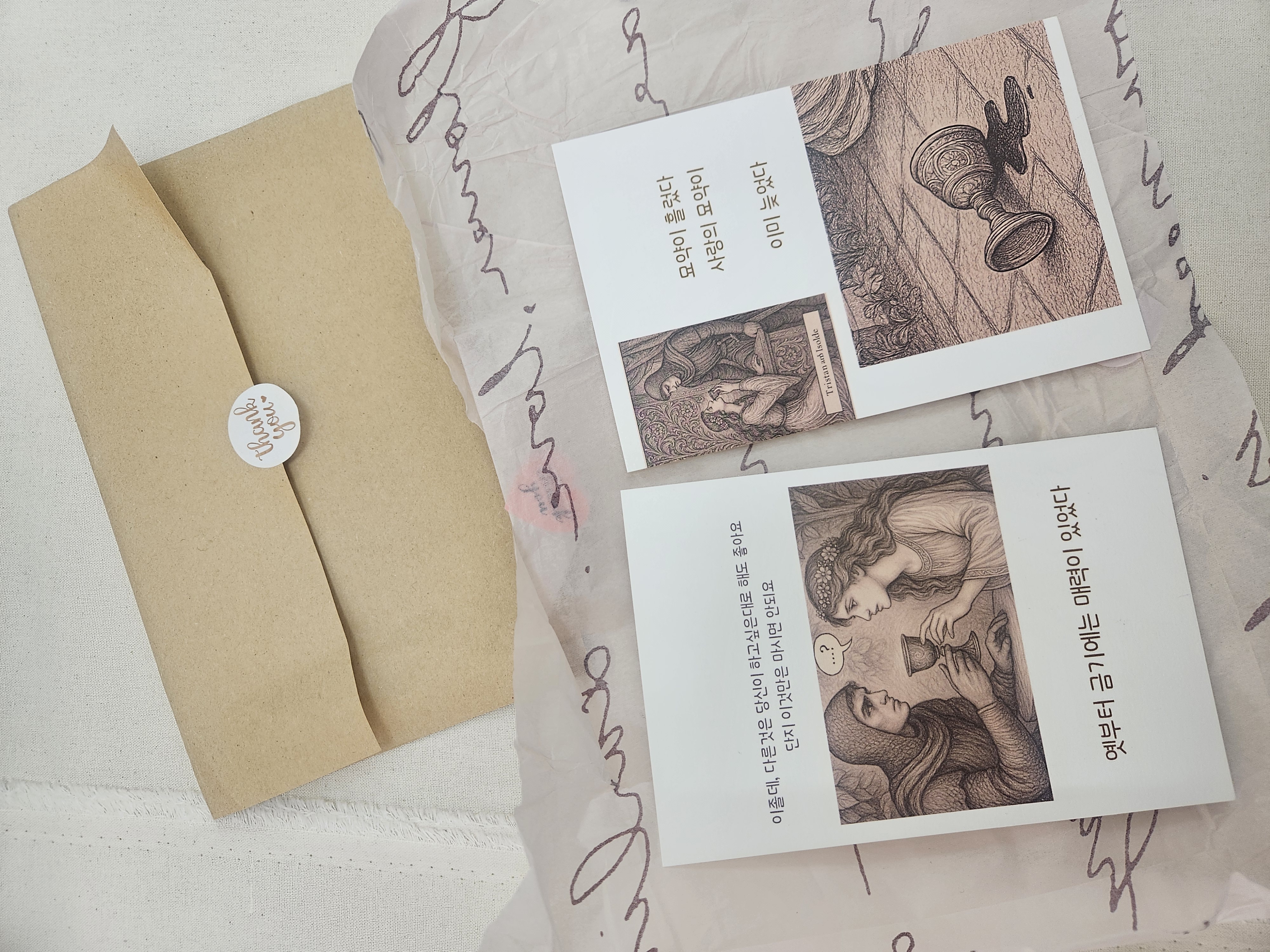 그 속에서 태어난 장면들을 작은 카드와 굿즈로 만들어