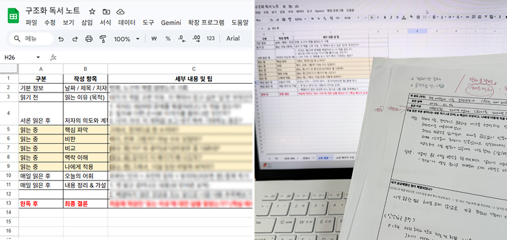 읽는 흐름에 맞게 바로 기록할 수 있도록