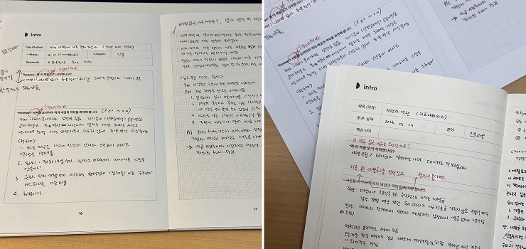 시중의 독서 노트는 보통 다 읽은 뒤 한꺼번에 정리하거나,