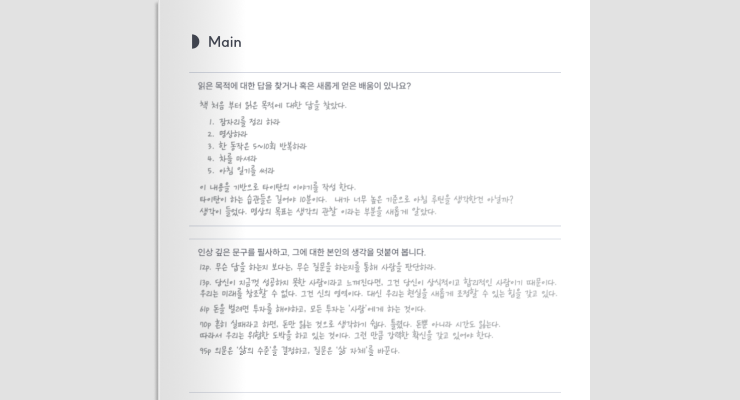 읽는 중간에 떠오른 생각을 기록할 수 있도록 구성했어요.