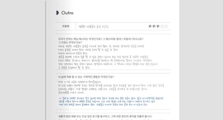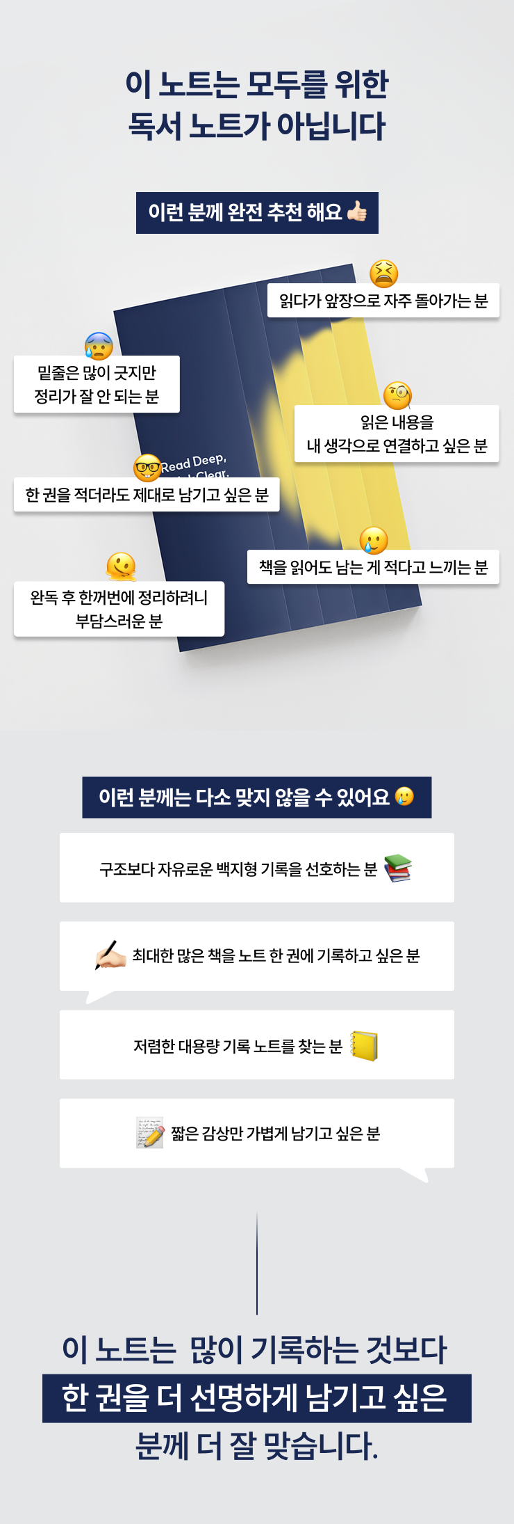 이 노트는 핵심 내용을 정리, 떠오른 생각과 읽은 뒤의 해석, 적용까지 이어질 수 있도록 구성했어요.