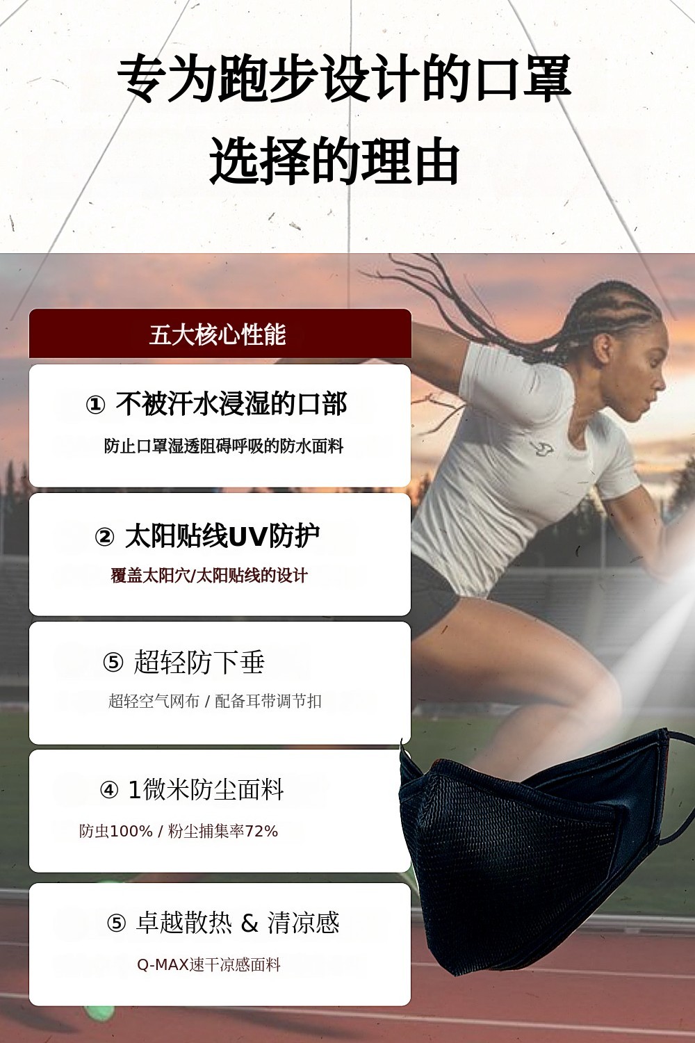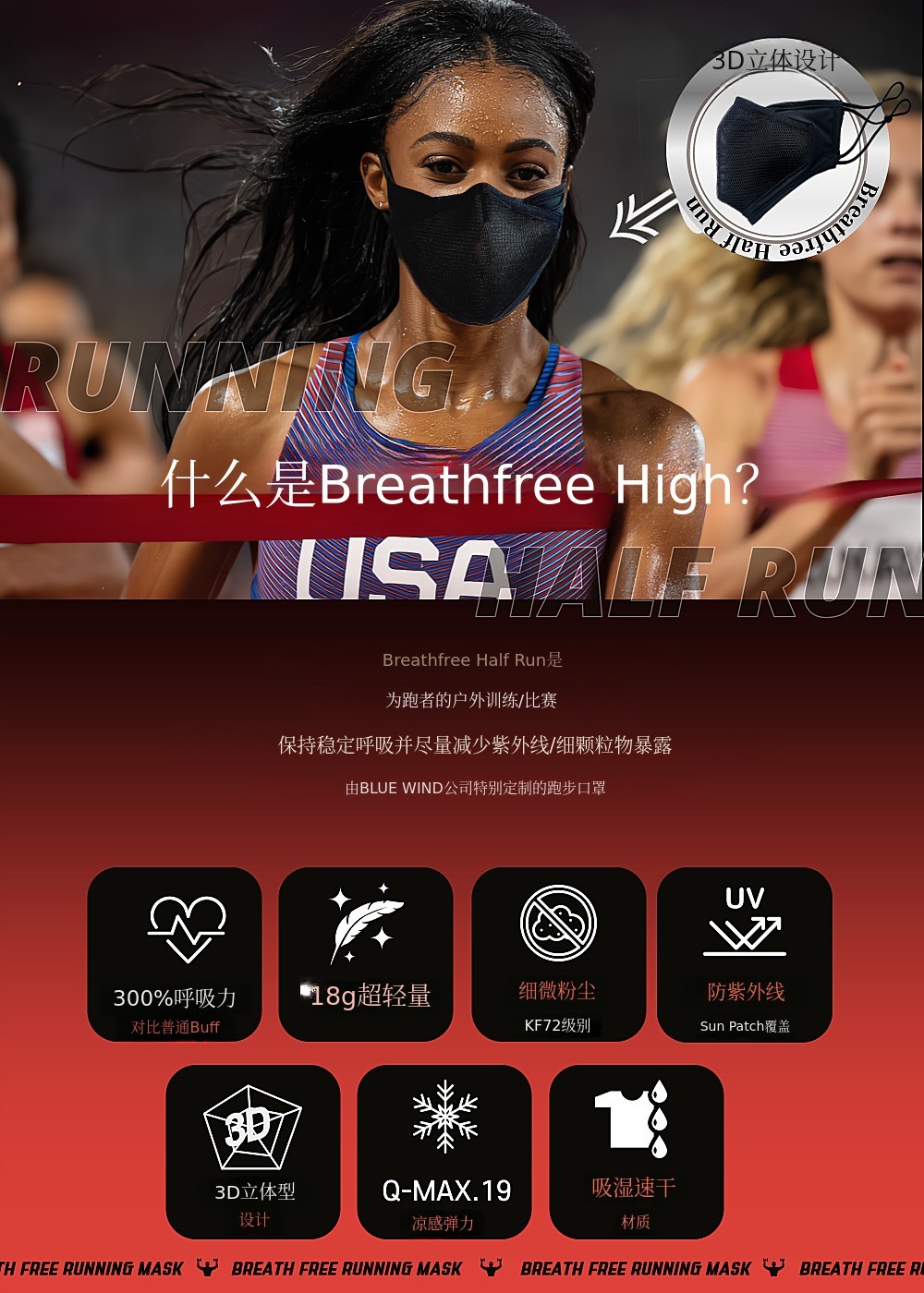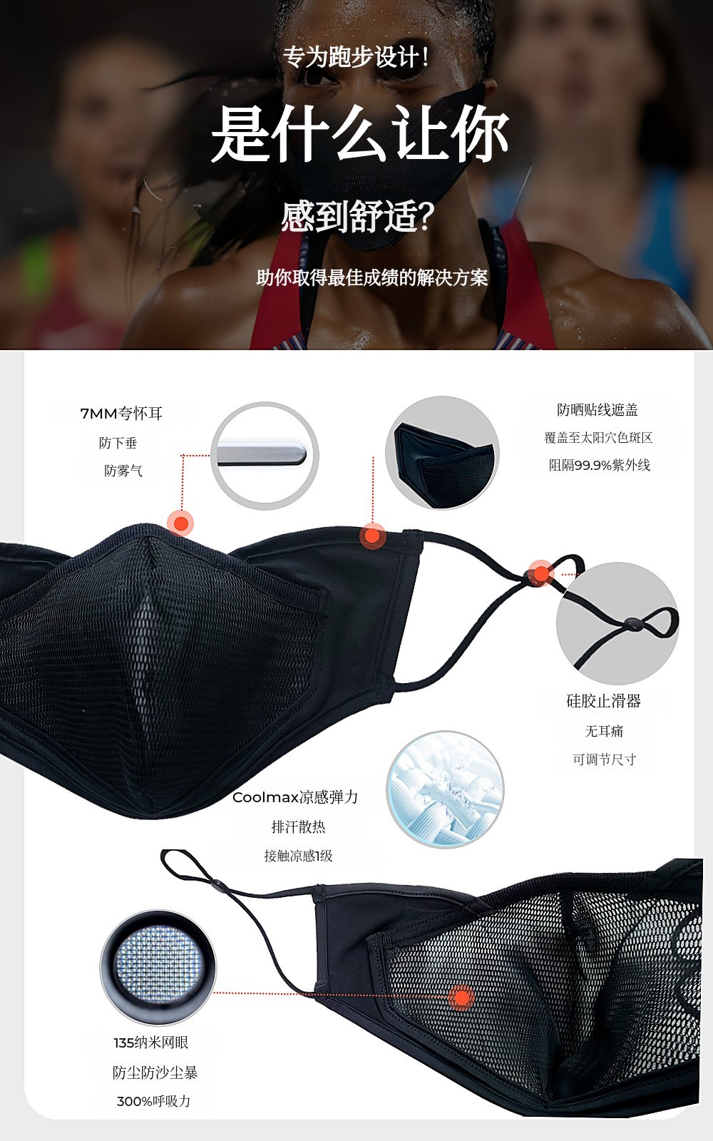 跑者的无呼吸困难 无障碍阻挡UV和细微灰尘 进行阻隔